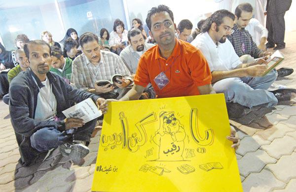 وتعبير عن رفضهم أي نوع من أنواع الرقابة، افترش المثقفون الإرض أمام احدى قاعات معرض الكتاب يقرأون مايشاؤون، بعيداً عن الوصاية المفروضة من قبل المؤسسات الرقابية في الكويت.سيف الرقيبوأكد النائب علي الراشد الذي حضر الاعتصام ضرورة اطلاق سراح عقول المبدعين وعدم تقييدهم بالأسوار، مطالبا مسؤولي الإعلام بالتدخل لتصحيح الوضع ومنح هذه الفئة حقها الطبيعي في ممارسة الكتابة والقراءة بعيداً عن سيف الرقيب، معرباً عن حزنه الشديد لتضييق الخناق على حرية الفكر والابداع في الكويت، داعيا الى رفع الحظر عن الكتب التي تعود بالنفع على المجتمع.وفي تعليقه على الوضع السياسي في الكويت راهناً، قال الراشد أن الحلول موجودة من خلال اللائحة والاستجواب حق دستوري، كما أن التأجيل حق دستوري أيضاً، مستبعداً الحل غير الدستوري، قائلاًَ أنه غير وارد، لا سيما أن البلد في يد صاحب السمو أمير البلاد وهي يد أمينة.تضييق الحرياتمن جانبه، أكد الدكتور أحمد البغدادي ضرورة المشاركة في التجمع «دعماً للعناصر الشابة التي تتطلع لحرية أكبر ضمن فضاء ديموقراطي رحب»، مشيراً الى أن «هذه الثلة من الشباب تعمل على الحد من تجاوزات الرقابة وتضييق الحريات»، موضحاً أن «عجلة التفاعل مع الحركات المناهضة للقمع والاستبداد الذهني مستمرة حتى لو كانت بطيئة، لا سيما في ظل حالة عدم الاهتمام بالحرية والقراءة من قبل المواطنين». وأسف لعدم وجود دور فاعل للمؤسسات التربوية والمجتمعية والمثقفين وأساتذة الجامعة. وعن عدم تفاعل نواب مجلس الأمة مع قضية الرقابة واشكالياتها أكد أن اهتمام معظم ممثلي الشعب يذهب باتجاه القضايا القبلية والطائفية في حين نهمش قضية الحرية ومتطلباتها. وبدوره، أكد الباحث والكاتب عقيل عيدان ان مبدعين كويتيين والجهات المنظمة للتجمع السلمي فضلت استخدام تقنية جديدة بعيداً عن الكلام، مؤكداً احترامه للقانون وللآخرين. لفت الانتباهومن جانبها، أكدت الأديبة ليلى العثمان في الاعتصام ذاته، أن المشاركة في التجمع ليس لإثارة الشغب إنما للفت الانتباه، مشيرة الى أن ثمة قناعة لدى كل كاتب بالاحتجاج على تعسف الرقابة، موضحة أن مجموعة من دور النشر العربية أبدت استياءها من الرقابة المتشددة في الكويت لاسيما أن القارئ لديه بدائل أخرى منها النشر الإلكتروني.ولفتت العثمان إلى أن العالم مفتوح وباستطاعة أي فرد الاطلاع على أي كتاب يود قراءته عبر شبكة الانترنت، مبدية أسفها لاستبداد الأصوليين والجماعات الدينية وسيطرتهم على وسائل الإعلام والمؤسسات الرقابية.غير مسيسأمّا الدكتورة ابتهال الخطيب، فأكدت أن الاعتصام ينبع من الشعب وغير مسيس، مشيرة الى أن جماعة صوت الكويت تعبر عن فكرة وليس أفراد بحد ذاتهم، نافيةً أن تكون هذه الجماعة مدعومة من أي جهة، رافضة الوصاية على الإبداع والفكر، مؤكدة أن المعتصمون يناصرون الدستور وينحازون إليه. وقالت الكاتبة ميس العثمان إن تنظيم التجمع للسنة الثالثة يأتي نتيجة المعاناة التي يعيشها الكاتب حينما يمنع نتاجه الفكري من التداول في بلده، فنحن لسنا في حالة صدام مع الرقابة إنما نهدف إلى الترويج للقراءة من خلال حملة إقرأ ما تشاء، مستغربة من المسؤولين في الإعلام الذين يؤكدون أنهم ضد الرقابة بيد أن قرارات المنع تتوالى في معرض الكتاب وفي كل عام تتضاعف الكتب الممنوعة. توصياتنا تتلخص في الآتي:أولا: تعزيز حرية التعبير كـ «مبدأ»، نص عليه الدستور، والغاء الرقابة جزء اصيل من تحقيق الحرية بمجملها.ثانيا: مكافحة الاتجاهات الثقافية والفكرية الرجعية والمتخلفة والعنصرية، وانهاء الممارسات المزاجية في مجال رقابة المطبوعات، وافساح المجال امام الاتجاهات الثقافية والوطنية والانسانية الحداثية/ التقدمية.ثالثا: حماية المبدع (الكاتب، الصحافي، الفنان... الخ) بشكل تام بصورة تمكنه من الابداع الحر، فالازدهار لا يكون الا في مجتمع ينعم بالحرية الكاملة المسؤولة.رابعا: رفع مستوى التنوير الفكري/ الثقافي في مراحل التعليم العام،