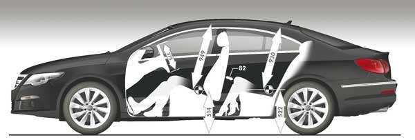إن فكرة تصميم سيارة باسات سي سي تتمحور حول تعريف اتجاهات جديدة ومبتكرة تفوق مثيلاتها السائدة، فالتصميم الخارجي للسيارة، وأنظمة قوى الدفع الفعالة، والمزايا التكنولوجية التي تجعلها تستحق التصنيف الراقي، تتجانس جميعاً في سيارة مميزة وفريدة من نوعها، تمنح عشاق السيارات المبتكرة القدرة على التخيل و الإبداع». يبلغ طول هذه السيارة الكوبيه 4796 ملليمتراً ما يعني أنها أطول بواقع 31 ملليمتراً من سيارة باسات الكلاسيكية. ومع تمتعها بعرض يصل إلى 1856 ملليمتراً (بزيادة 36 ملليمتراً)، تم تصنيف باسات سي سي بالفعل في الفئة التنافسية من الشريحة العليا للسيارات المتوسطة. وكما هو الحال مع عرضها، فقد تم تعديل عرض قاعدة عجلاتها أيضاً. ويبلغ عرض القاعدة في المقدمة 1553 ملليمتراً (بزيادة 11 ملليمتراً)، بينما يبلغ في الخلف 1557 ملليمتراً (بزيادة 16 ملليمتراً). ولا يزيد ارتفاع سيارة فولكس واجن الجديدة عن 1420 ملليمتراً (تم تخفيضه بواقع 50 ملليمتراً)، لتحصل على شكل رياضي مميز. المقصورة الداخليةتتجسد فلسفة سيارات الكوبيه في المقصورة الداخلية للباسات سي سي من خلال توزيع مقاعدها الأربعة، وقد تم تزويد السيارة من الأمام والخلف بمقاعد رياضية مصمَّمة طبياً لراحة الركاب وفق أرقى المعايير. ويُعتبر تصميم مقصورة ركاب سيارة باسات الكلاسيكية بالفعل رياضياً وأنيقاً وفاخراً للغاية، فقد تمت إعادة تصميم مفهوم الصف الخلفي من المقاعد بالكامل، إضافة إلى لوحة العدادات ووظيفة ضبط نظام التحكم بتكييف الهواء، وتم تزويد عجلة القيادة والأطر الداخلية للأبواب بخطوط جميلة. وتشمل الخيارات المتاحة لهذه السيارة خطوط زخرفة بارزة من الخشب الأصلي وتطبيقات جديدة للألمنيوم المصقول. كما تتوفر بنظام إنارة على الأبواب كإحدى المواصفات الإضافية، الذي يضفي على مقصورة الركاب أجواء إنارة لطيفة ليلاً. ويتوفر لسيارة باسات سي سي ثلاث عجلات قيادة رياضية اختيارية مكسوَّة بالجلد. وتبعاً للطراز، يمكن استخدام أزرار التحكم متعدِّدة الوظائف المثبتة في عجلة القيادة للتحكم بعدَّاد الرحلات، بالإضافة إلى العديد من الأنظمة المساعدة والأنظمة السمعية ونظام الهاتف. الأنظمة التقنية الأخرىتشتمل الأنظمة التقنية الأخرى التي تم تزويد باسات سي سي بها، على نظام الإطارات المتحرك. حيث يتعرَّض سائقو السيارات حسب ما تفيد الإحصائيات إلى تنفيس في إطارات سياراتهم مرة كل 100 ألف كيلومتر. ويقدِّر الخبراء أن نظام الإطارات المتحرك المجهَّز في سيارات باسات سي سي قد يزيد تلك المسافة إلى مرة كل 500 ألف كيلومتر، بسبب وجود مزيج مطاطي عالي المرونة يقوم بتغليف الجسم الذي يخترق الإطار ويحافظ على ضغط الهواء فيه حتى بعد استخراجه. إضافة إلى ذلك، تم تجهيز السيارة بما يصل إلى ثماني وسائد هوائية وبرنامج تحسس إلكتروني لتثبيت مسار السيارة وهيكل فائق الصلابة. المحركات وأنظمة نقل الحركةتطرح فولكس واجن سيارتها باسات سي سي الجديدة في منطقة الشرق الأوسط مزوَّدة بمحرِّك متطور جداً بنظام مباشر لحقن الوقود. وبهدف الحصول على مستوى قوة كبير، تتوفر السيارة بمحرِّك TSI قوي، يولِّد قوة 147 كيلو واط/ 200 حصان (بسرعة دوران 5100 دورة في الدقيقة)، وتم تزويد هذا المحرِّك أيضاً بشاحن هواء توربيني وبعزم جيد جداً واقتصادية ملحوظة في استهلاك الوقود، حيث لا يستهلك هذا المحرِّك القوي ورباعي الأسطوانات سوى 7.9 لتر من الوقود كل 100 كيلومتر، ويوفر عزم أقصى يصل إلى 280 نيوتن متري (ابتداءً من سرعة دوران 1800 دورة في الدقيقة). وعلى الرغم من ذلك، تبلغ السرعة القصوى التي يوفرها هذا المحرك للسيارة 237 كلم/ساعة. ويدفع المحرك سيارة باسات سي سي من الثبات إلى سرعة 100 كلم/ساعة في غضون 7.6 ثانية. وكبديل لناقل الحركة اليدوي القياسي سداسي السرعات، يتوفر للسيارة ناقل حركة أوتوماتيكي خياري بست سرعات أيضاً. أنظمة جديدة للمرة الاولى في العالم تصحيح المسارنظام «تصحيح المسار» الذي يحافظ على مسار السيارة الصحيح، ونظام «التحكم بالقي
