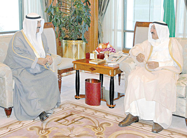 استقبل سمو أمير البلاد الشيخ صباح الاحمد بقصر السيف أمس سمو الشيخ ناصر المحمد رئيس مجلس الوزراء.