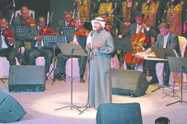 أحيت كوكبة من نجوم الأغنية الكويتية حفلاً وطنياً غنائياً نظمه المجلس الوطني للثقافة والفنون والآداب، برعاية وحضور وزير الإعلام الشيخ صباح الخالد.قدمت الحفل المذيعة سودابه علي التي ارتدت ثوباً كويتياً أسود، مرحبة بالحضور ملقية كلمة مقتضبة في حب الوطن.السعدصعد خشبة مسرح الدسمة الفنان المبدع فيصل السعد، حيث عانقت حنجرته الفريدة الأسماع وعطّرت الأنفاس بأسلوبه الغنائي المتميز، فرفرفت أعلام الكويت عالياً وتعالت الأكفّ في المسرح، فشدا في البداية أغنية المطرب الكبير عبدالكريم عبدالقادر «عالية رايات الوطن»، التي تحمل كل مفردات الحب للكويت الغالية، وصاغها الشاعر الرائع بدر بورسلي ولحنها المتميز د. عبدالرب إدريس:«عالية عالية.. رايات الوطن/عالية عالية.. سواري السفن/تسبق خطاوي الزمن/تتحدى أخطار ومحنهذي اهيا الكويت.. الكويت/الكويت.. الكويت/راياتها.. راياتها تخطي شواهد جسورها/أم السواري العالية العالية في بحرها/من اسمها والعز كله اسمها/أمجادها.. أمجادها تحجي مسيرة شعبها/ هذه العزيزة الغالية الغالية ما مثلها/قال الزمان.. والمجد ردد اسمها/هذه اهيا الكويت».ثم استمر السعد يتحفنا بأدائه الرائع بأغنية قام بغنائها وتلحينها الراحل عوض دوخي، وكتب كلماتها الراحل عبدالأمير عيسى:«يا حب سكن في مهجتي وحشاي يا كويت/يا حب تساوى بالهوى والماي يا كويت/يا سطعة قمر في ليلة صيفية/يا نفحة عطر وردة ربيعية»وختم وصلته بأغنية فرقة التلفزيون الشهيرة «يا وطن»، التي صاغ كلماتها الاعلامي عبدالرحمن النجار ولحنها الراحل مرزوق المرزوق:«يا وطن لك من يحبك/يا وطن لك من يودك/يا وطن كلنا نحبك/حبنا لك ماكو مثله/حبنا لك ماكو شكله/حبنا لك عملية ما هي سهلة/يا وطن/حبنا لهذا البلد/موهو حب العاطفة/موهو حب العاصفةموهو حب قلوب ترجف خايفة/يا وطن»مصطفىثم جاء دور الفنان الكبير مصطفى احمد ليشارك في أعياد الكويت بصوته الأصيل عبر أغنية «طير يا طير السعد»: «طير يا طير السعد طوف بسمانا وغرد الألحان وانثر علينا الورد والريحان»، ليتحف مسامعنا بأغنية «رفرف يا علم بلادي» التي تعتبر أول وأسرع أغنية وطنية سجلها الراحل سعود الراشد في أيام أزمة عبدالكريم قاسم، وهي من كلمات محمد القاسم: يقول مطلعها:«رفرف يا علم بلادي/فوق السهل والوادي/روحي والله وفؤادي/افديها لك يا علمنا»الشعّارالفنانة ريما الشعار المعروفة بأغنياتها الرومانسية شاركت لأول مرة في حفل وطني، مرتدية ثوياً أخضر وعليه وشاح علم الكويت، واستطاعت من خلال اربع أغنيات اثبات مقدرتها الصوتية على أداء هذه النوعية من الأعمال الغنائية، فاستهلت فقرتها بأغنية «بلدي الكويت» التي قدمتها فرقة الدانة الكويتية في عام 1984، وهي من كلمات وألحان احسان العويش:«كويت يا ديرة الأحباب، كويت يا أرض الأجدادكويت يا جنة المشتاق، كويت يا اسم بلاديبلدي الكويت بلدي الكويت أحبج يا الكويت»ثم اتبعتها بثلاث أغنيات قدمها المطرب الكبير عبدالله الرويشد، الأولى بعنوان «عيدي يا كويت» من كلمات احمد الشرقاوي وألحان يعقوب الخبيزي: «عيدي يا كويت يا أحلى بلد، آنا لج غنيت بروح وجسد،عيدي يا كويت، يا كويت يا احلى بلد». تلتها أغنيتان من كلمات الشهيد فهد الأحمد وألحان الراحل راشد الخضر:«عاشت لنا الكويت الكويت وعاشوا اهلها» ثم «أنا كويتي أنا، أنا قول وفعل وعزومي قوية، أنا كويتي أنا، أنا عند موقفي تحجي الجابرية».البلبلأخيراً جاءت فقرة بلبل الخليج نبيل شعيل الذي تغنى بكلمات الشواق وعطر الأنفاس بمشاعر حب الوطن، فالتهب المسرح حماسة ودفئاً فصدح البلبل بأغنية عبدالكريم عبدالقادر «نعم نحبج نعم»، كلمات الراحل الشيخ خليفة العبدالله والحان المبدع الراحل عبدالرحمن البعيجان:«نعم نحبج نعم ياللي انت فيج النعم/يحميج لنا الله والله يصونج ويديم عليج النعم/يازين اسمج بين البلادين/الله يحرسج ويحميج من العين».وانتقل البلبل ليغرد مجدداً في حب الكويت «الله يعز الكويت» كلمات مبارك بن شافي وألحان بشار الشطي:«دارنا ما مثل