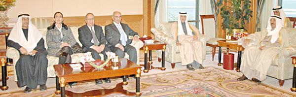 حضر المقابلة نائب وزير شؤون الديوان الاميري الشيخ علي الجراح ومدير مكتب سمو الامير احمد فهد الفهد ورئيس المراسم والتشريفات الاميرية الشيخ خالد العبدالله ووكيل وزارة الخارجية خالد الجار الله.كما استقبل سموه بقصر السيف أمس وزير الشؤون الاجتماعية والعمل بدر الدويلة ترافقه الشيخة حصة بنت خليفة آل ثاني المقرر الخاص للامم المتحدة المعني بالاعاقة وذلك بمناسبة زيارتها للبلاد. حضر المقابلة نائب وزير شؤون الديوان الاميري الشيخ علي الجراح ومدير مكتب سمو امير البلاد احمد فهد الفهد ورئيس المراسم والتشريفات الاميرية الشيخ خالد العبدالله والرئيسة الفخرية للنادي الكويتي الرياضي للمعاقين الشيخة شيخة الخليفة. واستقبل سمو الامير صباح الاحمد مدير عام مؤسسة الكويت للتقدم العلمي د. علي الشملان حيث قدم لسموه الفائزين بجوائز مؤسسة الكويت للتقدم العلمي للعام 2007 وهم: د. سامية خوري الفائزة بجائزة الكويت في العلوم الاساسية (علم المناعة) ود. عبد الرحمن أحمد الفائز بجائزة الكويت في العلوم التطبيقية (الصيدلة) ود. محمد رضوان الفائز بجائزة الكويت في الفنون والاداب (الادب الاندلسي) ود. حيدر بهبهاني الفائز بجائزة الانتاج العلمي في مجال العلوم الطبيعية والرياضية ود. جاسم الحمود الفائز بجائزة الانتاج العلمي في مجال العلوم الهندسية ود. فهد الناصر الفائز بجائزة الانتاج العلمي في مجال العلوم الاجتماعية والانسانية ود. جعفر حاجي الفائز بجائزة الانتاج العلمي في مجال العلوم الادارية والاقتصادية ود. بهيجة البهبهاني الفائزة بجائزة الانتاج العلمي في مجال العلوم الحياتية ود. نواف المطيري الفائز بجائزة الانتاج العلمي في مجال العلوم الطبية. وقد هنأهم سموه على حصولهم على هذه الجوائز العلمية الرفيعة متمنيا لهم كل التوفيق والنجاح، مؤكدا سموه اهمية البحث العلمي بوصفه العامل الاساسي للارتقاء بالمستوى الحضاري للأمم وتحقيق التقدم والتنمية. حضر المقابلة نائب وزير شؤون الديوان الاميري الشيخ علي الجراح ومدير مكتب سمو أمير البلاد أحمد فهد الفهد ورئيس المراسم والتشريفات الاميرية الشيخ خالد العبدالله.كما استقبل سمو أمير البلاد الشيخ صباح الأحمد وزير الشؤون الاجتماعية والعمل بدر الدويلة وقدم لسموه اللواء متقاعد فيصل الجزاف، بمناسبة تعيينه مديرا عاما للهيئة العامة للشباب والرياضة، وأعضاء مجلس الادارة الجدد. حضر المقابلة نائب وزير شؤون الديوان الاميري الشيخ علي الجراح ومدير مكتب سمو امير البلاد احمد فهد الفهد ورئيس المراسم والتشريفات الاميرية الشيخ خالد العبدالله.