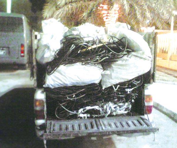 اعتقلت الفرقة الليلية في محافظة الجهراء ايرانيين كانا يسرقان الكابلات الكهربائية على طريق سكراب أمغرة مساء امس الاول، الفرقة الليلية وعلى رأسها الملازم أول متعب حمد والملازم محمد علي والرقيب أول سعد عاشق والرقيب حمد الرحيلي والعريف سامي الشمري انقسموا الى عدة مجموعات تجول بحرية وسرعة في أماكن مختلفة في محافظة الجهراء، ورأى أحد العناصر الامنية مركبة وبداخلها ايرانيان وتحمل كابلات كهربائية اشتبه في سرقتها، فاتصل بالملازم أول وأطلعه على الامر، فأمر رجاله بالتوجه إلى سكراب أمغرة لمساندة زميلهم والقبض على الايرانيين، وامره بمتابعة المركبة المشتبه فيها وعدم الابتعاد عنها حتى تحضر القوة المساندة، وبعد وصول الفرقة اعتقل الايرانيان واعترفا بأنهما سرقا الكابلات وفي طريقهما إلى المنزل لتخبئتها وبيعها في اليوم التالي، سجل ضدهما قضية وجار التحقيق معهما.