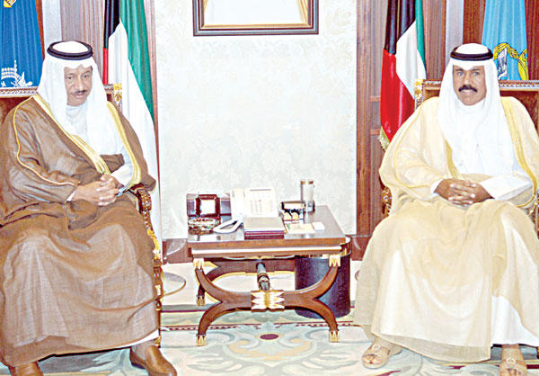 استقبل سمو نائب الامير وولي العهد الشيخ نواف الاحمد أمس بقصر بيان رئيس مجلس الوزراء بالانابة وزير الدفاع الشيخ جابر المبارك.