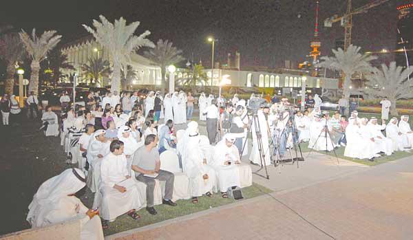 نظَّم عدد من الشباب مساء أمس الأول، وقفة احتجاجية في ساحة الإرادة بعنوان «لا للتكفيريين... وقفة لرفض عبث بعض التيارات المتأسلمة باسم الدين»، عبروا خلالها عن رفضهم لاستغلال الدين من أجل الحصول على مكاسب انتخابية وشخصية.أكد النائب السابق المحامي مشاري العصيمي أن «تيار الإسلام السياسي بدأ بالانحدار، بسبب وعي الناس والمرأة»، مشيرا إلى أن فتوى عدم التصويت للمرأة «قديمة لكنهم أخرجوها من «الفريزر» بسبب شعورهم بأن المرأة قادمة في هذه الانتخابات، وخوفهم من وصولها إلى قبة البرلمان»، لافتا إلى «أنني تألمت كثيرا عندما رفع تيار الإسلام السياسي راية الحرام، ولم يرفع طوال حياتنا راية الحلال»، مشيرا إلى أن له معهم تجربة طويلة امتدت لنحو ثلاثة عقود، وتحديدا حينما رشح نفسه للانتخابات النيابية عام 1981، حينما أصروا على تطبيق المادة الثانية من الدستور، التي تنص على أن تكون الشريعة الإسلامية هي المصدر الرئيسي للتشريع، مشددا على أن الكويتيين يعرفون ربهم ودينهم جيدا ولا يحتاجون إلى وصاية من أحد، والإسلام سيظل دينا خالدا في قلوب كل مسلم، مشيرا إلى أن الشعار الذي رفعه تيار الإسلام السياسي سيف ضد أي أحد يخالفهم الرأي.