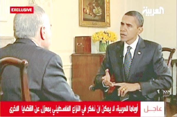 وفي أول مقابلة تلفزيونية خارجية خصّ بها قناة «العربية»، تطرق الرئيس أوباما إلى عدد من الملفات الشائكة، خصوصا الصراع في الشرق الأوسط والعلاقة مع إيران وبالطبع مع العالم الإسلامي. وقال الرئيس الأميركي: «من غير الممكن أن يقتصر تفكيرنا على الصراع الفلسطيني- الإسرائيلي وألا نفكر في ما يحدث في سورية أو إيران أو لبنان أو أفغانستان وباكستان... فهذه أمور مترابطة». وشدد على ضرورة أن «يستأنف الإسرائيليون والفلسطينيون مفاوضات السلام»، مشيداً بالعاهل السعودي الملك عبدالله لطرحه مبادرة عربية لإحلال السلام في الشرق الأوسط. ولفت أوباما إلى أن إدارته بدأت في تنفيذ وعود الحملة الانتخابية، بتعيين السناتور الأميركي السابق جورج ميتشيل مبعوثاً للسلام إلى الشرق الأوسط، وإيفاده الى المنطقة مع تعليمات بـ«البدء بالاستماع ثم العودة وتقديم تقرير عما سمعه»، وأضاف: «في نهاية المطاف لن نستطيع أن نقول للإسرائيليين أو الفلسطينيين ما هو الأفضل بالنسبة إليهم. عليهم أن يتخذوا بعض القرارات»، وتابع: «لكنني أعتقد أن الوقت حان لأن يدرك الاسرائيليون والفلسطينيون أن المسار الذي يسيرون فيه لن يؤدي الى الازدهار والأمن للشعبين وأنه بدلاً من ذلك حان وقت العودة إلى طاولة التفاوض». وجدَّد الرئيس الأميركي عزمه الدخول في محادثات مباشرة مع إيران في حال تبنَّت طهران «موقفاً أكثر ليونة»، وأوضح: «خلال الأشهر المقبلة سنضع الإطار العام، وكما قلت في خطاب التنصيب، إذا كانت دول مثل إيران مستعدة لتليين مواقفها، فستجد يداً ممدودة من جانبنا». وتعليقاً على تصريحات أوباما، قال المتحدث باسم الحكومة الإيرانية غلام حسين الهام أمس، ان طهران تتوقع «تغييراً ملموساً» في السياسة الاميركية حيالها، بينما رحّب وزير الخارجية السعودي الأمير سعود الفيصل بحديث الرئيس الأميركي، مبدياً استعداد الدول العربية لمناقشة «مبادرة السلام». من ناحية أخرى، اعتبرت وزيرة الخارجية الأميركية هيلاري كلينتون أمس أن «العالم بدأ يتنفس الصعداء» منذ تولي أوباما رئاسة الولايات المتحدة، بعد «الأضرار» التي تسببت بها إدارة جورج بوش. وقالت كلينتون إن «الموقف حيال باقي العالم» الذي تعتمده الإدارة الجديدة «لقي تجاوباً كبيراً في الخارج». وأضافت: «هناك أضرار كثيرة يجب علينا إصلاحها»، معتبرةً توليها وزارة الخارجية في هذه الفترة تحديداً «شرفا شخصيا كبيرا».