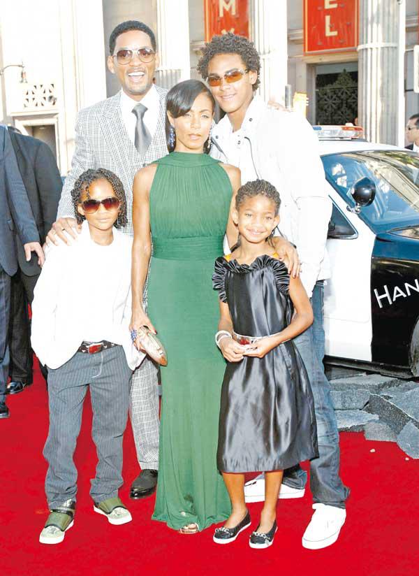ويل سميث وزوجته جادا بينكيت مع ابنهما جايدن وابنتهما ويلو وابن سميث ويللار كريستوفر الثالث خلال حضورهم العرض الاول لفيلم هانكوك أمس الأول في هوليوود - رويترز نشر في 02-07-2008 | 00:00 آخر تحديث 02-07-2008 | 00:00