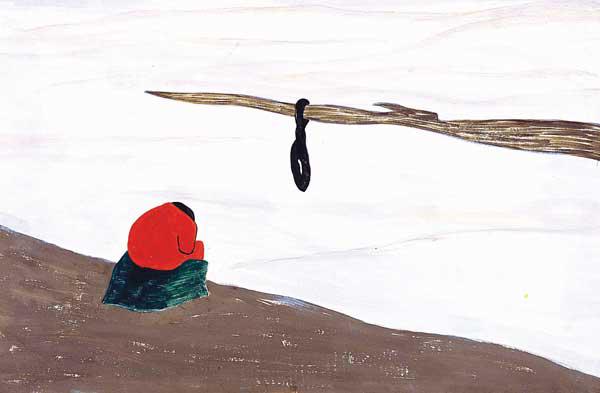 الفنان الأول هو جايكوب لورانس ويتجسد عمله في سلسلة «الهجرة» التي تمّت عام 1941. أعادت مجموعة فيليبس جمع 60 من لوحاته التي قُسمت بين متحف فيليبس ومتحف الفن الحديث. يمكن مشاهدة العرض الذي يكمّل ذلك العمل في «آرون دوغلاس: الفنان الأميركي من أصل أفريقي»، وهو معرض يقام في متحف الفن الأميركي السميثوني ويأتي من متحف سبنسر للفنون في جامعة كنساس ويقدم النظرة الأولى الشاملة إلى إحدى أبرز الشخصيات في نهضة هارلم. العرضان أساسيان لفهم مرحلة مهمة من الفن الأميركي الافريقي. لا يمكن الاعتراف بنجاح لورانس في رسوماته عن «الهجرة» من دون مشاهدة إخفاقات دوغلاس وفهمها. نهضة هارلمبدأ لورنس «هجرة الزنجي»، العنوان الأصلي لسلسلته، عام 1940 عندما كان في الثانية والعشرين. وُلد في نيو جرسي، وترعرع في بنسلفانيا وعاش في هارلم منذ بداية مراهقته. عندما حاز الموافقة على رسم لوحات عن «الهجرة»، لم يكن تلقى تدريباً رسمياً. تعرض لوحات لورانس الستون هروب الأميركيين الأفارقة من الجنوب الريفي في فترة الحرب العالمية الأولى، نشهد مآسي الجنوب: حالات الإعدام من دون محاكمة قانونية، المحاكم الظالمة والأشغال الشاقة والفقر. نعايش لحظة الهجرة: حثّ المهاجرين على الانتقال من قبل صحف السود والباحثين الشماليين عن العمالً. كذلك نرى إيجابيات إقامتهم في المنازل الشمالية وسيئاتها: تحسن فرص العمل والحصول على طعام أفضل وانخفاض حدة القمع العلني، تشكّل أحياء الأقليات، اندلاع أعمال الشغب العنصرية وشن الهجمات على مباني السود. لا يتجاهل لورانس التغييرات الجذرية التي طرأت على فن الرسم خلال العقود الأربعة الماضية. لم يستطع العمل باعتماد التقنيات القديمة بسبب ارتباطها بالأيام السابقة السيئة التي ولد فيها. ولتتسم بطابع زمنه والنظر إلى المستقبل مع بعض الأمل، كان لا بد من تصميم لوحات «الهجرة» بأسلوب عصري يحاكي المستقبل، لكن كونه رجلاً أسود يعالج قضية عرقه، واجه استخدامه لهذا الأسلوب الرائد بعض المعارضة بما أنه نتاج مجتمع البيض القمعي. المعارضة واضحة خصوصاً في الحرفة الفنية لسلسلة «الهجرة». تخضع معظم أشكال لورانس وشخصياته لأسلوب معين كما يتطلب الفن الحديث، لكن بدلاً من البراعة الهندسية وطريقة الرسم من دون تظليل، تبرز الخطوط الكفافية بشكل غير متقن. نلاحظ وجود ثغرات وترددات في مساحات الألوان الواسعة وكأنها ملونة بيد ولد كسول. يتجنب لورانس صقل المساحات الدقيقة الذي غالباً ما يستخدم في الفنون الجميلة ويستعيض عنه بآثار الصور الزيتية التي تتم بأقل قدر ممكن من العمل، كأنه يعترف بالأسلوب العصري كلغة وحيدة يمكنه التحدث بها، لكنه يصر على أن الرسالة تهمه وليس اللغة. هجرة الزنجيمع جعل رسوماته غير مرضية من حيث معايير الفن العصري الدقيق، يقول إن أهدافه تختلف عن أهداف الرواد على غرار بيكاسو وفرناند ليجيه. يعمل بأسلوب عصري، لكنه يرفض تطويره أو نقله إلى مرحلة متقدمة. كما يظهر في رسوماته، لا يتلاءم الأسلوب المزخرف مع المواضيع المطروحة، يبدأ ذلك الأسلوب بالتفكك عندما يواجه مواضيع ذات أهمية. يهتم بإيضاح هذه المواضيع قدر الإمكان.لا يوجد شيء معقد بشكل غير ضروري في سلسلة «هجرة الزنجي» ولا يُستخدم مجاز أو رمزية أو إسنادات خفية. إنها لوحات قوية بقدر قوة اللوحات التي تحكي قصة آلام المسيح على جدران كنيسة من القرون الوسطى. مع ذلك، مثل اللوحات الجصية، يأتي معظم هذه القوة من عدم مطابقة اللوحات للقصص التي ترويها. لم تكن على الإطلاق بديلاً بسيطاً للقصة، حتى لوحات جيوتو لم تكن بمثابة «انجيل الأميين» كما اعتقد الخبراء الفنيون في القرون الوسطى طوال عقد أو أكثر. عوضاً عن ذلك، تنجح اللوحات القصصية بسبب الجهد الذي تستغرقه لملاءمتها القصص أو التفكير بالقصص غير المعروفة التي قد تمثلها، ولأن هذا الجهد يدفعنا إلى النظر إليها عن كثب والتفكير في محتواها.تتطلب سلسلة لورانس بمواضيعها المختلفة جهداً يفوق المعتاد لفهمها. ما موضوع اللوحة رقم 7 شبه التجريدي