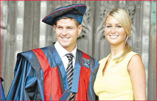 نجم المنتخب الانكليزي ونادي ليفربول ستيفن جيرارد وزوجته اليكس كوران، بعد حصوله على درجة الزمالة الفخرية من جامعة جون موريس في مدينة ليفربول، وذلك لمساهمته في رياضة كرة القدم. وقال جيرارد: أنا فخور جدا بما حصلت عليه، وأتمنى تقديم المزيد إلى مدينة ليفربول.
