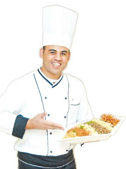 عمل كذلك في مدينة الغردقة في فندق ROYAL PALACE وفندق GRAND HAYAT في شرم الشيخ. عمل أيضا في مدينة طابا في فندق RADISON SA.انتقل الى الكويت واستقرّ في فندق المارينا في السالمية، وحصل على المدالية البرونزية في مسابقة الطهاة المحترفين (HORACE 2008). الكشري المصري (لأربعة أشخاص)المكونات - الكميةعدس أسود 200 غرز 3 كوابمعكرونة صغيرة كوبشعيرية ½ كوبحمص ½ كوببصل عدد 4عصير طماطم كوبانصلصة طماطم ملعقة كبيرةفص ثوم عدد 3خل وملح وعصير ليمون بحسب الرغبةكمون وكزبرة وشطة بحسب الرغبة طماطم عدد 2زيت ذرةالطريقة 1. أسلقي العدس والحمص بالماء على النار، ثم اسلقي المعكرونة.2. اطهي الرز الأبيض و الشعيرية كلّ على حدة.3. قطعي البصل الى شرائح وبلليلها بالدّقيق ثم اقليها بالزيت لتحمرّ ثم اتركيها لتجفّ.الصلصةضعي الثوم مع زيت الذرة وأضيفي اليه الخل والليمون وبعض الكمون والكزبرة وعصير الطماطم واتركيها على نار هادئة قليلا.الدقة الحراقةضعي الشطة مع زيت الذرة والخل والليمون وامزجيه مع القليل من الصلصة الرئيسة.الدقة البيضاءضعي الماء والثوم مع الخل والكمون والكزبرة وحرّكيها قليلا.