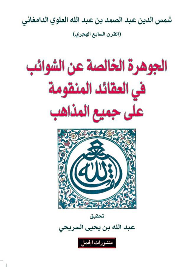 صدر أخيراً عن «دار الجمل» كتاب «الجوهرة الخالصة» لشمس الدين الدامغاني، تحقيق عبد الله بن يحيى السريحي.يعرض الكتاب رسالة الدامغاني «الجوهرة الخالصة عن الشوائب في العقائد المنقومة على جميع المذاهب».