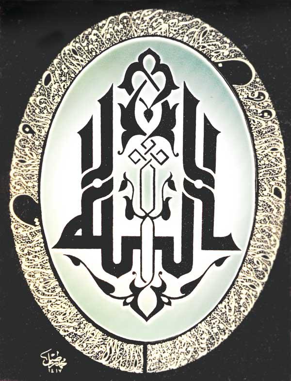 آية الكرسي، لوحة خطية على شكل بيضاوي بنوعين من أنواع الخطوط العربية (لفظ الجلالة) بالخط الكوفي، وباقي الآية مكتوب بخط جلي الديواني. وقد عرضت هذه اللوحة في عدة معارض بمكتبة الإسكندرية وفي إيطاليا واسكتلندا.