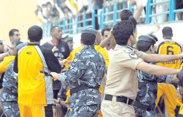 سيطرة قدساويةجاءت المباراة سريعة وحماسية، ونجح لاعبو القادسية في السيطرة على مجريات الأمور خلال الربعين الاول والثاني، ففي الربع الاول استغل لاعبو الاصفر المستوى المتواضع الذي ظهر عليه لاعبو الكويت، وأنهوه لمصلحتهم 16/10، ومع بداية الربع الثاني حاول لاعبو الكويت العودة الى جو المباراة، بيد ان غياب الروح لديهم حال دون ذلك، اذ ارتفع الفارق لمصلحة القادسية الى 14 نقطة، وتألق خلال هذا الربع محترف القادسية الاميركي اريك كافيلد، مع ارتفاع الفارق ادرك مدرب الكويت البوسني زوران خطورة الموقف طالباً «وقتاً مستقطعاً»، حتى يعيد الامور الى نصابها السليم، لاسيما تغيير خطة الدفاع من دفاع المنطقة الى الدفاع الضاغط، وساعد هذا على تقليص الفارق في الدقيقة الخامسة إلى 7 نقاط، ولكن سرعان ما عاد القادسية إلى التقدم ورفع الفارق مجدداً، وذلك بثلاثيتين متتاليتين لنجمه صقر عبدالرضا لينتهي الربع الثاني لمصلحة الأصفر 39/28.انتفاضة بيضاءومع بداية الربع الثالث ضاعف الكويت من دفاعه الضاغط، مما ساهم في تقليص الفارق إلى 7 نقاط مرة اخرى، لكن لاعبي القادسية واصلوا اداءهم القوي حتى رفعوا الفارق مرة أخرى الى 20 نقطة، وفي الدقيقة الرابعة اندلعت الشرارة الاولى لأحداث الشغب التي شهدتها المباراة، إذ احتسب الحكم القطري محمد السبيعي بالخطأ «أوت» لمصلحة القادسية، بدلاً من احتسابها لمصلحة الكويت على الرغم من قربه من اللعبة ورؤيتها بوضوح، وأثار هذا الجماهير البيضاء التي هتفت ضد الحكم كثيراً.ليطرد الحكم لاعب الكويت حسين عبدالرحمن، ويعاود اللعب استئنافه، ويبدو أن هذه الاحداث نجحت في بث الروح القتالية في نفوس لاعبي الكويت، الذين ضيقوا الفارق إلى 9 نقاط مع نهاية الربع الثالث (65/56)، وفي الربع الرابع واصل الكويت أداءه القوي وسط تراجع في مستوى لاعبي القادسية، ليصل الفارق للمرة الاولى الى نقطة واحدة، لتشتعل المباراة ويتبادل الفريقان التقدم، وفي آخر 4 ثوانٍ تقدم الكويت 83/80، وتعادل القادسية بثلاثية لعبدالله المطيري لتنتهي المباراة بالتعادل 83/83، ويلجأ الفريقان إلى وقت اضافي مدته خمس دقائق نجح لاعبو القادسية في حسمه لمصلحتهم وتنتهي المباراة بفوز الاصفر بنتيجة 96/87، معلناً تتويجه بطلاً للدوري العام لموسم 2007/2008.القادسية يتوج بطلاً للدوري رسمياً اليوميتوج اليوم فريق القادسية بطلا للمربع الذهبي للدوري العام لكرة السلة، وذلك في مواجهة اليوم امام الساحل في الساعة الخامسة والنصف، على صالة فجحان هلال المطيري بنادي القادسية، ويعقبها مباراة تحديد المركزين الثالث والرابع، بين الكويت والجهراء. «مافيا» الاتحاد وصفت جماهير نادي الكويت اعضاء الاتحاد بأنهم اشبه بالمافيا، بعد القرارات الظالمة التي تعرض لها فريقهم، وطالبت الجماهير العصيمي بالانسحاب من المباراة، كما طالبت ايضا وسائل الاعلام الموجودة بضرورة ابراز هذه الاحداث، حتى يأخذ كل ذي حق حقه. مهزلة تحكيمية وأحداث مؤسفة أدار اللقاء الحكام جاسم محمد ومحمد السبيعي من قطر وفاضل غلوم من البحرين، واتسم اداء الحكام بالتخبط والعشوائية، وارتكبوا العديد من الاخطاء وكانوا سببا رئيسياً في احداث الشغب التي شهدتها المباراة. ففي الثواني الأخيرة من المباراة، حدث احتكاك بين لاعب نادي الكويت علي الذياب ولاعب القادسية عبدالله المطيري بعد شد المطيري للذياب من الخلف، ليتدخل احتياطي القادسية عبدالعزيز الحميدي موجهاً «اللكمات» إلى الذياب، ثم اختلط بعدها الحابل بالنابل كما يقولون، وتحولت ارضية الصالة الى «حلبة مصارعة»، ولولا تدخل قوات الأمن الخاصة والعقلاء من الفريقين لحدث ما لا تُحمد عُقباه، ودفعت هذه الاحداث الى «اشعال الفتيل» بين جماهير الفريقين، التي تشابكت خارج الصالة، حيث جاءت بداية «الهوشة» بين الجماهير عندما تشابك رئيس رابطة جماهير الكويت فيصل التميمي مع رئيس رابطة جماهير القادسية هيثم رمضان. نائب رئيس الاتحاد لا يعرف حكام المباراة علمت «الجريدة» من مصادره