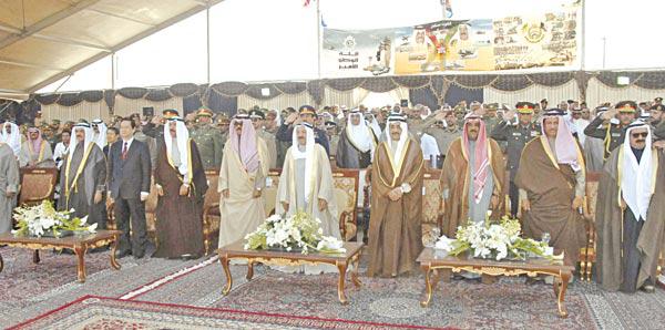 وأُقيم العرض تحت رعاية سمو أمير البلاد القائد الاعلى للجيش والقوات المسلحة الشيخ صباح الاحمد وحضوره، بمناسبة العيد الوطني الـ48 ويوم التحرير الـ18، في منطقة صبحان، بحضور سمو ولي العهد الشيخ نواف الاحمد ورئيس مجلس الامة جاسم الخرافي وكبار الشيوخ، وسمو الشيخ ناصر المحمد رئيس مجلس الوزراء والوزراء والمسؤولين. واظهر العرض القدرات العسكرية المتطورة والمتقدمة التي وصل اليها الجيش الكويتي، واجهزة وزارة الداخلية الامنية والحرس الوطني من اسلحة ومعدات واحتراف عسكري، في عرض عسكري هو الاكبر في تاريخ البلاد، وانصهار كل القطاعات العسكرية والامنية في بوتقة واحدة، بظل توجيهات القيادة السياسية لمواجهة الاخطار على المستويين الداخلي والخارجي. واتصف المشاركون فيه بالكفاءة والمهارة والقدرة والجاهزية القتالية، ما يدل على حسن ما تلقاه منتسبو هذه القوات من استعدادات وتدريبات عسكرية خاصة في فنون الحرب والقتال والدفاع المدني، لمواجهة كل الظروف والاحتمالات لحماية الوطن الغالي والذود عن حماه، والتصدي لكل من يريد به شرا والحفاظ على امنه واستقراره. واثارت العروض حماسة واعجاب الجمهور الذي صفق بحرارة لهذا التميز، تعبيرا عما يكنه من حب واحترام وتقدير لقواتنا العسكرية، نظرا لما تمثله من قوة حقيقية للبلاد في الدفاع عنها وصون كرامتها وحماية مكاسبها. وقد بدأ العرض بفصائل القوات الراجلة مشاة من قوات المغاوير في الجيش، وقوات الصاعقة من الحرس الوطني وطلائع الفرسان بالشرطة، حيث احتشدت في تراصٍ منظم وفي عرض عسكري مهيب، تقدمه منتسبو مختلف القطاعات العسكرية بخطوات ثابتة وهامات مشرئبة تعانق السماء، وروح معنوية عالية متواكبة مع الصدى القوي والزخم الموسيقي والمارش العسكري، عابرين من امام منصة سمو الامير راسمين لوحة جمالية تجلت فيها القيم الوطنية والاستبسال في سبيل الوطن. وتلا ذلك استعراض آليات وزارة الداخلية بكل قطاعاتها، ثم قُدّم عرض لآليات عسكرية متنوعة من الجيش والحرس الوطني، وتخلل العرض تحليق للمقاتلات الحربية الكويتية بمختلف انواعها، حيث رسمت لوحات فنية في السماء بالوان علم دولة الكويت، واخرى على شكل تشكيلات ثلاثية ورباعية وخماسية واسراب اكدت كفاءة قائديها وحرفيتهم. لقطات من العرض العسكري وصول الأمير ● حضر سمو أمير البلاد الشيخ صباح الاحمد الى المنصة الاميرية لمتابعة العرض العسكري في الساعة العاشرة والنصف صباحا، وغادر سموه المنصة بعد انتهاء العرض في الساعة 12.45 ظهرا. كبار الحضور ● حضر الحفل سمو ولي العهد الشيخ نواف الاحمد ونائب رئيس الرئاسة العامة للحرس الوطني الشيخ مشعل الاحمد، وسمو الشيخ ناصر المحمد رئيس مجلس الوزراء ورئيس مجلس الوزراء الفيتنامي، وجميع أعضاء الحكومة وعدد من أعضاء مجلس الامة وسفراء العالم في الكويت، وكبار القياديين في الجيش والشرطة والحرس الوطني. تحية العلم ● بتحية العلم افتتح القائمون على العرض العسكري حفلهم الذي بدأ في تمام الساعة 10.40 صباحا، تبعها عدد من العروض العسكرية. حضور كبير ● حضر جمهور كبير من المواطنين الى منطقة صبحان مشيا على الاقدام لمتابعة العرض العسكري. ثلاث جهات عسكرية ● ادت ثلاث جهات عسكرية هي: الجيش، الشرطة، الحرس الوطني، عروضا مميزة خلال الحفل، وقدم المسؤولون عن تلك الجهات شرحا تفصيليا للحضور عن مهام كل فريق يدخل الى الميدان أثناء العرض. الوزير المبارك ● حرص النائب الاول لرئيس مجلس الوزراء وزير الدفاع الشيخ جابر المبارك على متابعة اخراج العرض العسكري بأجمل صورة، لاسيما العروض المثيرة التي نالت اعجاب الحضور جميعا، فضلا عن التسهيلات التي قدمها للمواطنين لمتابعة العرض بارتياح. علم الكويت رسم بـ«الدخان» ● رسمت الطائرات العسكرية الى جانب عرضها الجوي علم الكويت بالدخان الملون، مما طبع على وجوه الحضور ابتسامة اعجاب تخللها تصفيق حار. سفن برمائية ● السفن البرمائية، التي دهش العموم حين شاهدها، دخلت أخيرا في صفوف آليات وزارة الداخ