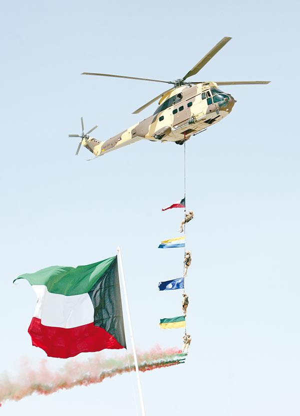 توجت الكويت أمس احتفالاتها بالاعياد الوطنية بعرض عسكري، شاركت فيه مختلف المؤسسات العسكرية في البلاد، ممثلة بوحدات من الجيش الكويتي البرية والجوية والبحرية، الى جانب اجهزة وزارة الداخلية الامنية والحرس الوطني.