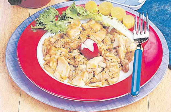 المقادير - 2 كلغ من صدور الدجاج المسحب - 2/1 1 كوب زيت نباتي- كوبان عصير ليمون- ملعقة طعام من 7 بهارات مطحونة - رشة ملح (حسب الرغبة)- ملعقة شاي من البهار المطحون- رشة فلفل أبيض مطحون - رشة مستكة مطحونةالطريقة1. قطعي الدجاج بحجم أصابع. أضيفي اليه جميع المقادير واخلطي جيداً. أتركي المزيج في الثلاجة (البراد) مدة 24 ساعة.2. ضعي المزيج في صينية وادخليها الى فرن مرتفع الحرارة (250 درجة مئوية) لمدة 45 دقيقة او حتى ينضج.3. قدمي الطبق مع البطاطا المقلية والثوم بالليمون والزيت.