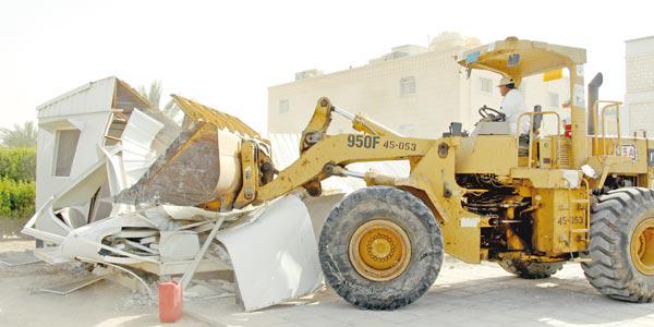 محافظة الجهراء وقال رئيس فريق إزالة تعديات محافظة الجهراء عبدالله الميع إن الفرق باقية لتخالف من يتجاوز قوانين البلدية، وستزيل التعديات التي تمت مخالفتها سابقا، مبيناً ان الفريق يجول في منطقة قسائم العثمان قطعة 4 و5 و79 التي تواجه تعديات على املاك الدولة لا مثيل لها، إذ تمت إزالة 34 تعديا على أملاك الدولة. وأضاف الميع ان التعديات تمثلت في بناء أسوار خارجية، وغرف على املاك الدولة، وزراعة على الارصفة، تتسبب في حجب للرؤية، بالاضافة الى وضع مظلات تم بناؤها من دون اخذ اي تصريح مسبق، لافتا الى ان الفرق أزالت مجموعة من المخيمات المخالفة للشروط الامنية في المنطقة الشمالية. مبارك الكبير من جانبه، قال رئيس فريق إزالة تعديات محافظة مبارك الكبير مشعل الصافي، ان الفريق جال في منطقة القصور قطعة 2، وأزال ما يقارب 11 تعديا، تنوعت ما بين حجب للرؤية وغرف خارجية، بالاضافة الى إزالة عدد من المخيمات المخالفة لقوانين البلدية والقريبة من المنشآت النفطية. فريق الدعم أمّا رئيس فريق الدعم المكلف بمتابعة فرق الإزالة محمد دشتي، فقال إن الفريق أزال 32 تعديا على املاك الدولة، وذلك بعد جولة صباحية دامت حتى الظهيرة في منطقة عبدالله المبارك في القطعتين 6 و7. وبيّن ان التعديات تنوعت ما بين غرف خارجية مخالفة، وزراعة على الارصفة ومظلات وحجب للرؤية، داعياً المخالفين إلى ضرورة الالتزام بقوانين البلدية، وإزالة اي تعد قبل أن تزيلها جرافات البلدية. حولي وأكد رئيس فرق تفتيش محافظة حولي طارق القطان أن فرقه أزالت 34 مخالفة واقعة على أملاك الدولة، تنوعت بين حجب للرؤية ومزارع مخالفة في منطقة مشرف قطعة 4، مبيناً ان فرق الإزالة واجهت مقاومة ومنعا من قبل بعض المواطنين المخالفين للوائح والنظم، مما اضطر رجال الأمن الى اتخاذ الإجراءات اللازمة لمواصلة مهمتهم.