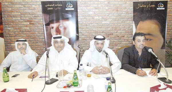 افتتحت المذيعة حنان حمود المؤتمرين بالحديث عما يميز «هاب» من انتقائها للأصوات العربية الموهوبة، والتي تقدمها بالشكل اللائق، ولم تكتف بذلك بل ستظل تبحث وتدعم.ثم تحدث نائب رئيس مجلس الإدارة بمؤسسة هاب الشاعر عبدالعزيز الميلس قائلاً: يشرفني بحضور مستشار «هاب» الملحن الدكتور يعقوب الخبيزي توقيع ثلاثة عقود مع الفنانين طارق سليمان وعلي عبدالله وفيصل الصراف.كما أكد الدكتور الخبيزي الدور الذي تلعبه المؤسسة في ظل صاحبها الشيخ صباح الناصر الذي ينتج لمحبته الفن مادياً ومعنوياً، وهذا ما يضاف إلى تاريخ الفن الكويتي، في وقت قرصنة الانترنت والخسائر الفادحة التي يتكبدها المنتجون، «هاب» تقدم إنتاجا ضخما للمطرب، إضافة إلى تصوير ثلاثة أعمال من ألبومه. وأضاف الخبيزي أن المؤسسة تتبنى الأصوات النسائية، لكنها تتحفظ على ذكر أسمائها في الوقت الحالي.الفنان طارق سليمان الشهير بأغنية «عسى ما شر» أبدى سعادته الكبيرة بالتعاقد مع «هاب» قائلاً: كما ترون وقعت دون أن أعرف التفاصيل لأنه يشرفني التعاون معها، فالشيخ صباح الناصر بمنزلة أخ كبير لي، وسبق لي التعامل معه قبل إنشاء المؤسسة، إذ أهدى ألبومين لي؛ واحد لشركة النظائر والثاني لميغاستار.وأوضح سليمان أنه تعاون مع شركات انتاج سابقاً لكنه لم يشهد معها ما تقدمه «هاب» حالياً، فهي تترك الحرية الكاملة للمطرب في اختيار أعماله وتدعمه وتصور أغنياته وتطرحها في الفضائيات الموسيقية. أما الفنان علي عبدالله فقد قال: لقد انتهى عقدي مع» روتس، والآن انضممت إلى فناني «هاب»، تلك المؤسسة التي كثيرا ما طمحت بالانضمام إليها نتيجة الانسجام والتفاهم بين الإدارة والفنانين. كما استغرب علي عبدالله من أن مهرجان مثل «هلا فبراير» الكويتي لا يستقطب الفنانين الكويتيين الشباب، وكذلك دعم الفضائيات للمطربين الكبار فقط.وعن فيصل الصراف فهو صاحب أغنية واحدة تم تصويرها فيديو كليب، لقد واجهت صعوبات في البداية من جانبي الدعم والدعاية، مما صعب علينا الانتشار، وبعدها دخلت برنامج «ألبوم»، و«هاب» اليوم تدعم الفنان ماديا واعلاميا، وهذا ما شجعني على أكون أحد فنانيها.وكشف عبدالعزيز الميلس عن وجود دراسة لإنشاء قناة فضائية، مؤكداً تعاونه مع معظم المحطات الفضائة التي تبث الفن الراقي، واعتبر أن الفن يقتل على جميع الأصعدة سواء من البرلمان أو الإعلام، مشيراً إلى شكاوى الفنانين في مختلف مجالاتهم بهذا الشأن، مستغرباً عدم وجود نقابة للفنانين حتى الآن.ثم انتقلنا إلى المؤتمر الثاني مع الفنانين عصام كمال وعبدالعزيز الضويحي ومساعد البلوشي بمناسبة طرح البوماتهم في الأسواق.أكد المطرب عصام كمال عدم توقفه عن طرح ألبوماته منذ عام 2002 بقوله: أطرح كل عامين ألبوماً غنائياً منذ عام 2002 «جبرني الوقت»، ثم «هذا أنا»، و«رومانسيات عصام كمال»، والآن «متربع هنا»، وأنا سعيد لأن اغنية «واللي يسلمك» حققت نجاحاً في الإمارات والسعودية وقطر كأكثر أغنية تحميلاً عبر شبكة الانترنت.ونفى عصام الشائعات المغرضة التي تقول ان الأعمال التي قدمها ليست من ألحانه بقوله: هذا الكلام غير صحيح.أما عبدالعزيز الضويحي فقد أكد عدم توقفه عن الساحة الفنية بقوله: إنني موجود في الحفلات الخاصة والسهرات، لكنني غبت عن طرح الألبومات، وبفضل الشيخ صباح قدمت ألبومي الجديد وسأقدم أعمالاً أخرى معه، وسأصور أغنيتين «ليش يا قلبي» للملحن عبدالله القعود، و«يا دنيا» وهي أول تعاون مع الملحن د.يعقوب الخبيزي.وعزا مساعد البلوشي تأخر طرح ألبومه إلى دقة اختيار أعماله، مشيراً إلى ان ألبومه الجديد (تملكني) قد احتوى على 11 أغنية، وحقق من خلاله انتشاراً أوسع.وفي الختام أعلن الميلس فوز مؤسسة هاب على الاسطوانة الذهبية من «EMI» بحصول الفنان عصام كمال على الاسطوانة الذهبية عن ألبومه «متربع هنا»، وسيُخصص لهذا الإنجاز مؤتمر آخر.