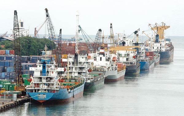 مجموعة من السفن تنتظر في ميناء تانجونغ بريوك في العاصمة الاندونيسية جاكرتا أمس، وانخفضت الصادرات الاندونيسية بنسبة 20.6 في المئة في ديسمبر الماضي، وهو أسرع انخفاض خلال السنوات السبع الماضية.
