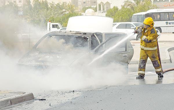 وقع حادث سير لسوري يبلغ من العمر 25 عاما أدى الى احتراق مركبته وإصابته بجروح في السالمية صباح امس، السوري كان يسير بمركبته التي كانت حرارتها مرتفعه بشكل غريب ولم يبال بل واستمر في السير بها الى وجهته، وعندما توقف المحرك غير مسارها ليقف إلى جانب الطريق، وعلى الفور اندلعت بها النيران فور فتحه الغطاء، تم ابلاغ غرفة العمليات التي ارسلت رجال الامن والاسعاف ومركز اطفاء السالمية واخمدت النيران.