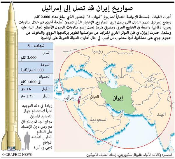 تتفاعل مجدداً هذه الأيام مسألة الصواريخ الإيرانية، التي تواصل طهران تجريبها في البر والبحر والجو. وفي ما يلي لمحة عن هذه الصواريخ:- «شهاب 3»: اطول الصواريخ الايرانية مدىً، إذ أعلن الجيش الايراني ان مداه يصل إلى 2000 كلم، اي ما يكفي للوصول الى القواعد الاميركية في الخليج وإلى داخل إسرائيل.