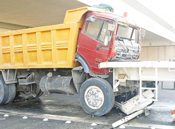 إصابة أربعة واحتجاز قائد قاطرة في اصطدام 3 شاحنات ومركبتين