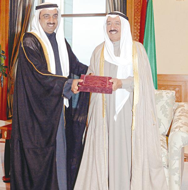 واستقبل سموه محافظ الاحمدي الشيخ د. إبراهيم الدعيج، حيث أهدى لسموه باسمه وباسم أبناء المحافظة عملا فنيا حمل عنوان «سمو المجد»، وذلك بمناسبة الذكرى السنوية الثالثة لتولي سموه مقاليد الحكم.واستقبل سموه عضو مجلس الامة النائب د. محمد العبد الجادر، حيث أهدى لسموه رسالة الدكتوراه التي حملت عنوان «جغرافية الانتخابات البلدية في دولة الكويت».