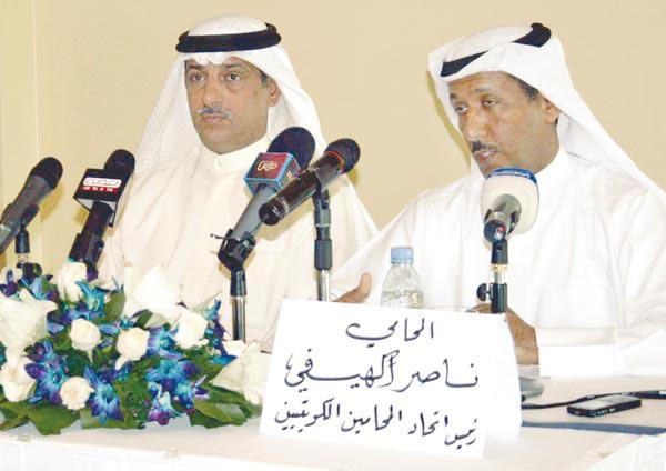 وأضاف الهيفي، على هامش المؤتمر الصحافي الذي عقد ظهر أمس للرد على قرار جمعية المحامين، أن «التحرك الذي قام به الاتحاد والمتمثل في توجيه شكوى إلى وزير الشؤون الاجتماعية والعمل، فضلاً عن تقديم كل من المحاميين الهيفي والخنة، شكوى منفردة إلى مخفر الصالحية وشرق ضد عدد من أعضاء جمعية المحامين، يعد دفاعا عن النفس والسمعة».وقال: «هناك مجموعة من المحامين تفكر وبشكل جدي في الانسحاب من الجمعية احتجاجاً على ما يجري، وردعاً لتصرفات بعض أعضاء مجلس الإدارة غير المقبولة، لكننا طلبنا منهم تأجيل هذا الموضوع، وإفساح المجال لمساعي بعض الاعضاء من العقلاء لحل هذا الموضوع». وأشار الى أنه تم الاتفاق بين مجموعة من مكاتب المحامين لتأسيس اتحاد يسعى إلى تشكيل الشركات المهنية التي من شأنها عمل استقرار وتواصل في القضايا حتى نهايتها، مؤكداً سعي الاتحاد إلى تنظيم اقتصادات المكاتب عن طريق إيجاد فرص عمل. وأضاف: «نسعى إلى أن يكون لمكاتب المحامين دور إيجابي على الساحة الاقتصادية كما هو الحال في الدول المتقدمة، لاسيما إرجاع الثقة الى ابناء الوطن ومساهماتهم في إنشاء مكاتب للمحاماة تعود بالنفع على القطاع الخاص». واوضح أن المادة 85 من القانون رقم 38 لسنة 1964 الصادر بشأن تنظيم العمل في القطاع الاهلي، أعطت الحق لأصحاب الاعمال في تكوين اتحادات غايتها تنظيم مصالحهم والدفاع عنهم، لاسيما المادة 74 من ذات القانون والتي نصت على أن النقابة قائمة قانوناً ولها الحق في مباشرة أعمالها بمجرد إيداع الاوراق لدى الوزارة، مشيراً إلى أن الدستور الكويتي نص في المادة 43 على حرية تكوين الجمعيات والنقابات على أسس وطنية وبوسائل سلمية مكفولة وفقاً للشروط والاوضاع التي بينها القانون، ولا يجوز إجبار أحد على الانضمام إلى أي جمعية أو نقابة، متسائلاً: أين جمعية المحامين من هذه النصوص؟ وهل اطلع أعضاؤها المشتركون في إصدار قرار الفصل على الاتفاقيات الدولية التي الزمت الكويت تجريم كل فعل يتعارض مع حريات الاشخاص في تكوين النقابات؟ وأكد الهيفي أن إنهاء النزاع القائم بين الاتحاد والجمعية بيد أعضاء الجمعية أنفسهم، ممن أثاروا الموضوع، نافياً خلق أي صراعات من قبل الاتحاد، موضحاً أن الاتحاد في حالة دفاع عن النفس والسمعة التي ضرت القائمين على الاتحاد من جراء بعض التصرفات الطائشة التي صدرت من قبل بعض أعضاء مجلس إدارة جمعية المحامين.