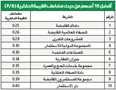 الجريدة ترصد أفضل 10 أسهم من حيث مضاعف القيمة الدفترية 92 شركة تمثل 50% سجلت مضاعف قيمة دفترية أقل من 1