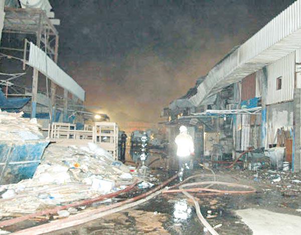وقع حريق في ستة محال تجارية أدى الى اتلافها بالكامل بمساحة تقدر 3000 متر مربع عبارة عن مناجر ومستودع أخشاب واصباغ ومواد سريعة الاشتعال في منطقة الشويخ مساء امس الاول، الحريق بدأ في احدى المناجر وساعد التخزين السيئ في انتشار النيران في كل مكان، غرفة العمليات تلقت بلاغا عن الحريق وارسلت رجال الامن والاطفاء التي ارسلت ستة مراكز إطفاء هي الشويخ الصناعي والشهداء والسالمية الشمالي والاسناد والهلالي، وبلغ عدد الاطفائيين المشاركين في عملية الاخماد 70 إطفائيا، وحضر الى الموقع مدير إطفاء محافظة العاصمة بالانابة العقيد عبدالله الجاسم ومدير العلاقات العامة والاعلام بالانابة المقدم محمد البناي ورئيس مركز الشويخ الصناعي المقدم حسين السمحان، وتمت السيطرة على الحريق واخمدت النيران وسجلت قضية جار الكشف عن ملابساتها.