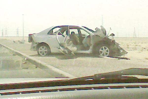 وقع حادث تصادم بين مركبتين أدى الى اصابة سبعة أشخاص بجروح خطيرة واتلاف المركبتين المتصادمتين في منطقة الجهراء مقابل محطة وقود النسيم مساء امس الاول، المركبة الاولى كان على متنها اب من المقيمين بصورة غير قانونية (بدون) وأصيب بإصابات طفيفة ومعه ابنته التي تبلغ من العمر ثلاث سنوات واصيبت بجرح في الرأس ونقلت الى مستشفى الجهراء، كما اصيب اخوها الذي يبلغ من العمر خمس سنوات بجرح في الرأس أيضا واصيبت زوجته التي تبلغ من العمر 32 سنة وهي غير كويتية بكسر في الساق اليسرى وجرح قطعي بالجبهة وجروح متفرقة في أنحاء الجسم، ونقلوا جميعا الى مستشفى الجهراء.اما المركبة الثانية فقد كان بها شخص من المقيمين بصورة غير قانونية «بدون» يبلغ من العمر 23 عاما واصيب بكدمات في الرقبة والكتفين ومعه والدته واحد إخوته ويبلغ من العمر 6 سنوات واصيب بخلع في الكتف الأيمن وكسر في العضد الأيمن وكسر في الفخذ الأيمن كما اصيبت والدته التي تبلغ من العمر 34 سنة وهي غير كويتية بجرح في الجبهة ونزيف داخلي في الرأس وبعض الجروح المتفرقة في الجسم.