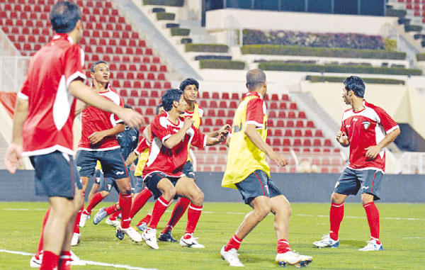 الأزرق باشر تدريباته أمس استعداداً للبحرين إبراهيم طالب لاعبيه بعدم الالتفات إلى الشائعات