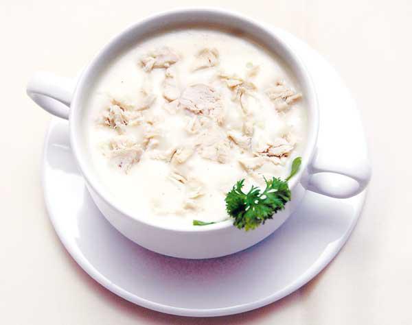 - صدر دجاجة مسلوقة ومفرومة عدد 1- ثوم مدقوق ملعقتان صغيرتان- زبدة ملعقتان كبيرتان- طحين أبيض او دقيق ملعقة كبيرة- مكعب ماجي عدد 1 - ماء حار كوبان- زبادي ملعقتان كبيرتان- فلفل أبيض ربع ملعقة صغيرةالطريقة 1. إقلي الثوم بالزبدة جيدا ثم أضيفي اليه مكعب ماجي ثم أضيفي الدجاج وقلّبيه جيدا. 2. ضعي ملعقة الطحين على الخليط وحرّكي جيدا، ثم أضيفي اليه الماء الحار واتركيه على نار هادئة بعد أن تتبلي الشوربة بالفلفل والملح.3. ضعي الزبادي وقلبي بحركة دائرية سريعة واتركيه على نار هادئة لمدة 3 دقائق وقدميه ساخنًا.