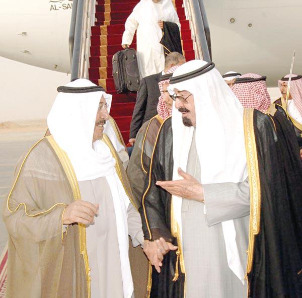 وكان في استقبال سموه لدى وصوله مطار قاعدة الرياض الجوية أخوه خادم الحرمين الشريفين الملك عبدالله بن عبدالعزيز وسفير دولة الكويت لدى السعودية الشيخ حمد جابر العلي الصباح وعدد من كبار المسؤولين السعوديين.ويرافق سموه وفد رسمي يضم كلا من نائب رئيس مجلس الوزراء وزير الخارجية الشيخ د. محمد الصباح ومدير مكتب سمو أمير البلاد احمد الفهد ورئيس المراسم والتشريفات الأميرية الشيخ خالد العبدالله ووكيل وزارة الخارجية خالد الجارالله.وكان سموه والوفد الرسمي المرافق غادر ارض الوطن عصر أمس متوجها الى السعودية وذلك تلبية لدعوة تلقاها من اخيه خادم الحرمين الشريفين الملك عبدالله بن عبدالعزيز آل سعود عاهل المملكة العربية السعودية الشقيقة لحضور القمة العربية المصغرة التي ستعقد في العاصمة الرياض. وكان في وداع سموه على ارض المطار سمو ولي العهد الشيخ نواف الاحمد ورئيس مجلس الامة جاسم الخرافي ونائب رئيس الحرس الوطني الشيخ مشعل الاحمد وسمو رئيس مجلس الوزراء الشيخ ناصر المحمد ووزير شؤون الديوان الاميري الشيخ ناصر صباح الاحمد وكبار المسؤولين بالدولة.