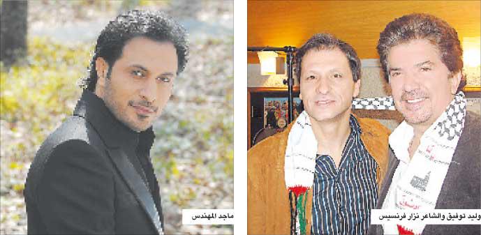 سجّل الفنان وليد توفيق أغنية «فكوا الحصار»، يحكي فيها جرح فلسطين عبر كلمات تحمل مضامين الصمود والتحدي والكرامة، صاغها الشاعر نزار فرنسيس ولحنها وليد توفيق ووزعها داني حلو وصُورت في بيروت، يقول مطلعها: «فكّوا الحصار هدّوا الجدار يا غزة هاشم قاوم، تحت الدمار ناموا الصغار يا عيونهم مجد احلمي، ضلي يا غزة محصّني وعلّي جبينك عالدني، أرض الدما صارت سما وعمرا السما ما بتنحني، فكوا الحصار». من جهته أصدر الفنان طوني قطان أغنية «راح ترجع فلسطين» جاءت كلماتها بمثابة ردّة فعل على الأحداث المؤلمة التي يعيشها أهل غزة. الأغنية من كلمات طوني قطان وألحانه وتوزيعه، صوّرها مع المخرج بلال المصري في الأردن. يذكر أن قطان اعتذر عن إحياء حفلات رأس السنة 2008 تضامناً مع أهل غزة.ما زالت هيفاء وهبي تبحث عن أغنية وطنية جديدة تظهر عبرها تضامنها مع الشعب الفلسطيني الذي يعاني من وحشية العنف الإسرائيليي حسب رأيها. كذلك لم تحدّد موعداً جديداً لزواجها من رجل أعمال مصري تعيش معه قصّة حب منذ فترة، تضامناً مع حالة الحداد العام المسيطرة على الشارع العربي إزاء أحداث غزّة الأخيرة، وفق ما تردّد في وسائل إعلامية مختلفة. مواويل وأناشيدبدأت المحطات الإذاعية والتلفزيونية العربية بث موال الفنان ماجد المهندس الجديد «يا غزة لا تبكي» يناجي فيه الأهل فيها، ويتحدث عن معاناتهم وعن سفك دماء إخوانهم العرب من المحيط الى الخليج. الأغنية من ألحان المهندس وكلمات الشاعر فائق حسن، وتم تسجيلها في استديو إيلي سابا في بيروت. كان المهندس علّق نشاطاته الفنية فور بدء العدوان الإسرائيلي على قطاع غزة نهاية الشهر الماضي من ضمنها إحياء حفل رأس السنة.في الإطار نفسه نقل المكتب الإعلامي التابع للمهندس في العاصمة الأردنية عمّان، عنه قوله إن ما يحدث في غزة حالياً وما يتعرض له الاهل والأشقاء هناك، يشكل استمراراً للمجازر والمؤامرات التي تستهدف الأمة العربية، وللأحداث في العراق ولبنان وفي فلسطين الحبيبة.وأثنى المهندس على المواقف الشريفة والموحدة للشعوب العربية في نصرة غزة، عبر حملات التبرع بالدم والمساعدات العينية والمالية، متمنياً أن تزول هذه الغمامة السوداء من سماء الأمة العربية ومؤكداً أن «هذه المواقف ليست غريبة عن الشرفاء في أمتنا العربية الكبيرة». من جهتها تستعد مؤسسة رياض للإنتاج الإعلامي لإطلاق ألبومين إنشاديين تضامناً مع أهل غزة. يتضمن الألبوم الأول «غزة الصمود» عشر قصائد كتبها الشعراء: عبد الله شرف، الدكتور حبيب اللويحق، عبد العزيز العزاز، خالد المصري، أسير الشوق، صلاح العنزي ومحمد العيسى، وشارك فيه المنشدون: عبد الله شرف، عبد الرحمن الحسن، فواز الخلاقي، عبدالله السرحاني، خالد المصري، أبو عبد العزيز، أحمد المقيط، أبو عبد المجيد، عبد الرحمن السليمان، معاذ أبو جبل. أما الألبوم الثاني «غصن غزة» فهو من كلمات: سلطان السبهان، محمد الشفيع، محمد الصاوي، عبدالرحمن الأهدل، شريف قاسم، محمد الغريب، بنيان العجمي، وشارك فيه المنشدون: محمد التركي، عمر السويري، أبو عبد المجيد، عبد الرحمن المونس، يزيد الأماسي، عبد الرحمن الحسن، مفلح الفهيد، ناجي الحقباني، محمد الجبالي، هاني السريح، لا تتوقف القائمة هنا بل تشهد الأيام المقبلة المزيد من الأغنيات الوطنية الخاصة بفلسطين على غرار ما شهدته الساحة الفنية من أغنيات لا تعد ولا تحصى تضامناً مع لبنان إزاء الحرب الاسرائلية عليه في تموز 2006.