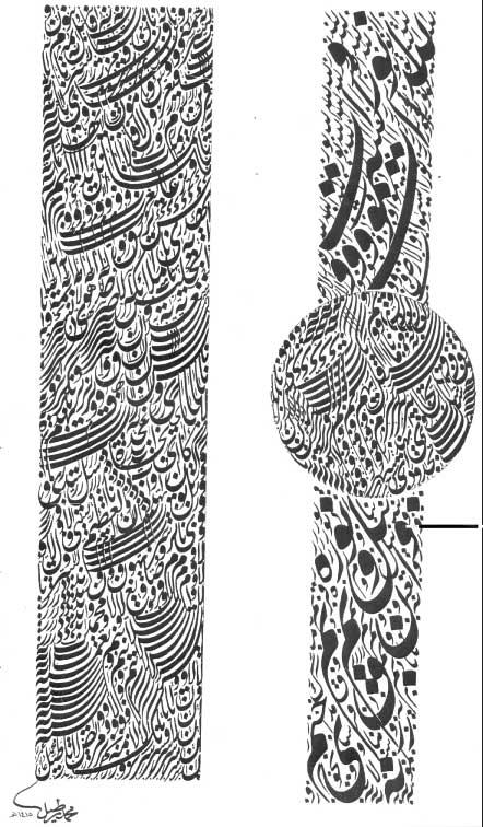 من أعمال فنان الخط العربي محمد رطيل لوحة خطية عبارة عن تكوينات زخرفية بالخط الفارسي, فيما يسمى بالمصطلح الخطي الفني «كرلمة» أي كتابات من الحروف والكلمات متداخلة بأشكال هندسية مختلفة. وقد عرضت هذه اللوحة في عدة معارض مصرية وأجنبية.