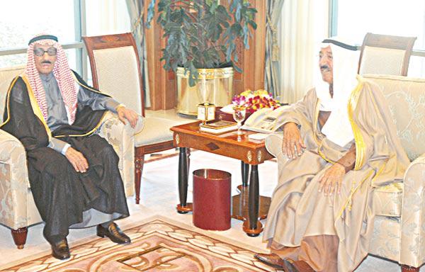 استقبل سمو امير البلاد الشيخ صباح الاحمد بقصر السيف أمس على التوالي رئيس مجلس الامة الاسبق احمد السرحان ورئيس مجلس الامة الاسبق محمد العدساني ورئيس مجلس الأمة الأسبق احمد السعدون ورئيس مجلس الامة جاسم الخرافي وذلك في اطار المشاورات التقليدية الجارية لتشكيل الحكومة الجديدة.