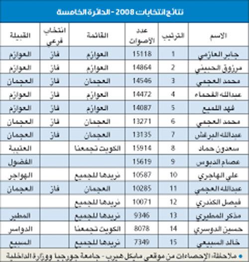 الدائرة الخامسة قبيلة واحدة تكتسح تجمُّعاً من أربع قبائل... و302 صوت بين العاشر والحادي عشر