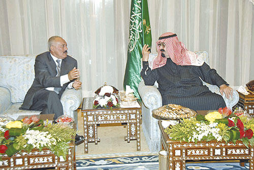 عقد العاهل السعودي الملك عبدالله بن عبدالعزيز اجتماعاً أمس مع الرئيس اليمني علي عبدالله صالح في الرياض، بحثا خلاله العلاقات الثنائية ومُجمل الأوضاع الإقليمية والدولية.وقالت وكالة الأنباء السعودية الرسمية (واس)، إن العاهل السعودي أكد "حرص المملكة على استقرار الجمهورية اليمنية وأمنها ووحدة أراضيها، راجياً لها اطراد التقدم والازدهار".