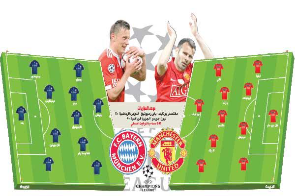 يستقبل مانشستر يونايتد الإنكليزي على ملعبه "أولد ترافورد" ضيفه بايرن ميونيخ الألماني، بينما يحل ليون الفرنسي ضيفا على مواطنه بوردو اليوم الأربعاء في إياب الدور ربع النهائي من دوري أبطال أوروبا لكرة القدم.