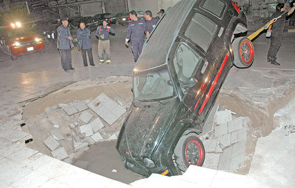 فوجئ أحد عمال محل لتصليح المركبات بمنطقة الشويخ الصناعية بسماع صوت انهيار أرضي خارج المحل في وقت متأخر من مساء أمس الأول، وعندما هب لمعرفة ما حدث وجد المركبة المتوقفة امام المحل قد سقطت في حفرة ناجمة عن انهيار أرضي.