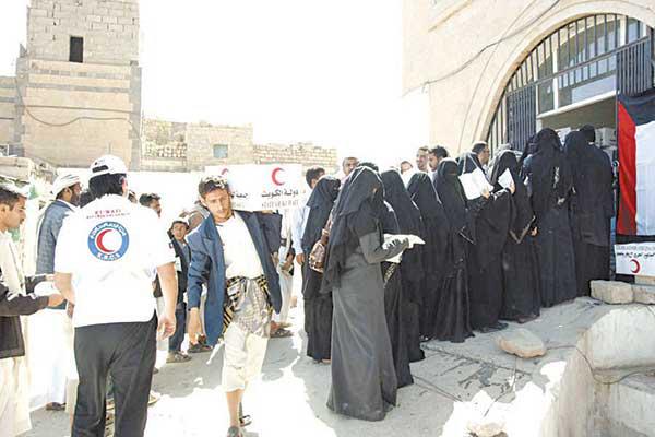 وزّع متطوعو جمعية الهلال الأحمر الكويتي بالتنسيق مع جمعية الهلال الأحمر اليمني أمس، مساعدات إنسانية وإغاثية على الأسر النازحة من محافظة صعدة في اليمن، التي تضررت نتيجة الاشتباكات العسكرية.وأشرف المتطوعون الكويتيون على عمليات توزيع المساعدات، بحضور وزير الدولة لشؤون مجلسي النواب والشورى أحمد الكحلاني، وأمين العاصمة عبدالرحمن الأكوع، ومسؤولي المجالس المحلية والمكاتب التنفيذية في محافظة صنعاء.