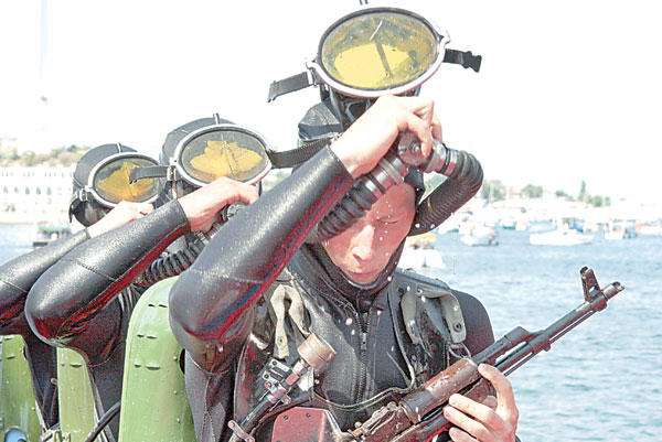 جنود في سلاح البحرية الروسي، خلال احتفال أقيم أمس، بمناسبة يوم البحرية، في قاعدة سيفاستوبول في أوكرانيا على ضفاف البحر الأسود (رويترز) نشر في 27-07-2009 | 00:00 آخر تحديث 27-07-2009 | 00:00