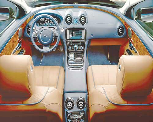 الأضواءوتأتي الأضواء الخلفية الجديدة أخيراً وبشكلها الطولي المنسدل، لتضيف إلى مؤخرة السيارة الغريبة نكهة خاصة، تجبرك على التأمل قليلاً فيها لتتعرف على ماهيتها وتدرك مدى سحرها وروعة فنّها.المقصورةمقصورة جاغوار XJ كلاسيكية في مبدئها، أنيقة ومحكمة الصنع في شكلها، مترفة ومتكاملة في تجهيزها، فهناك الخشب النفيس يلتف من حول المقصورة والركاب ليتداخل مع الجلد الفاخر، الذي يكسو معظم أرجائها وصولاً إلى المقاعد المترفة، وهناك أيضاً لوحة القيادة التي تجمع بمفرداتها بين الخطوط والتصاميم البسيطة وبين التقنيات المعقدة.وأجمل ما فيها فتحات التكييف الدائرية من الكروم ولوحة العدادات الكلاسيكية الأنيقة بتصميمها الرياضي، ومكبرات الصوت بشكلها الذي يعود إلى حقبة العشرينيات من القرن الماضي على الجانب، أما عنصر البريق فتمثل بالكروم اللامع، الذي يلتف حول الكونسول الوسطي ويتكامل مع الإضاءة الزرقاء.التجهيزات غنيّة ومتنوعة وتشتمل على أحدث تقنيات الاتصال والترفيه، منها شاشة مشغل DVD تعمل على اللمس بقياس 8 بوصات، وبفلات للصوت من نوع Bowers and Wilkins بقدرة 1200 واط. ورحابة المقصورة مثالية، كما تم استغلال مساحات التحميل بشكل أكبر بتعزيز جيوب التحميل الداخلية للاستفادة منها في المقصورة، أما الإضاءة الداخلية فهي تكتمل بوجود الزجاج البانورامي الذي يحتل مساحة كبيرة من السقف، مانحاً إنارة طبيعية من السماء داخل هذه المقصورة الفخمة.وستقدم جاغوار نسخة أساسية من XJ ونسخة أخرى أكبر منها، معتمدة على قاعدة عجلات أطول، لتستفيد من زيادة 125مم للطول عن الأساسية، بينما يبقى صندوق الأمتعة واحداً على صعيد السعة بين الاثنتين بواقع 520 لتراً.تقنياً، تم تطوير أنظمة التعليق كنظام التعليق الهوائي ونظام التأقلم من ظروف الطريق وباقي الأنظمة المساعدة على القيادة وأنظمة الأمان، وبالحديث عن الجوانب الميكانيكية فقد تمت إضافة الجيل الثالث من محركات البنزين والديزل على XJ الجديدة.المحركاتوأبرز تلك المحركات، واحد ديزل بسعة 3.0 لترات من ست اسطوانات V6، ومحرك بنزين بسعة 5.0 لترات V8 بقوة 385 حصاناً، وآخر بنفس السعة ولكن لنسخة سوبر تشارج بقوة 510 أحصنة، أما قوة المحرك فتنتقل عبر علبة السرعات الأوتوماتيكية من ست نسب إلى العجلات الخلفية الدافعة.وتبقى الآمال مشدودة لرؤية هذه التحفة الفنية بسحرها الإنكليزي العريق، تجوب شوارع الكويت لنتأمل مدى جمالها وأناقتها.وتتو فر السيارة بأربعة مستويات وهي:XJ Luxury - XJ Premium Luxury - XJ Portfolio - XJ Supersport، وأقوى محركات السيارة هو: 5.0 Liter AJ-V8 Gen Supercharged المقصورة الداخليةالانطباع الغالب من الداخل هو شعور الطيران في الفضاء محاطاً بتصميم كلاسيكي راق، ولوحة أجهزة القياس متطورة والجلود الملفوفة في جميع أنحاء السيارة رائعة، محددة بلوح خشبي فاخر وممتد في الجزء العلوي من التصميم الداخلي، يعكس ثقة المصمم في إبداع تصاميمه وجمالها. وكان السقف الزجاجي البانورامي منذ البداية جزءاً لا يتجزأ من مفهوم التصميم من كل جديد جاغوار، كذلك أضيف إلى التصميم سقف من الشرائح الزجاجية بآلية فتح وصعود إلى الخارج بسيطة وسلسة، في حين تقدم الستائر الكهربائية الخلفية مستوى آخر من الخصوصية، بالإضافة إلى شاشة بحجم 8 بوصات عالية الدقة، ومتعددة الاستخدامات.