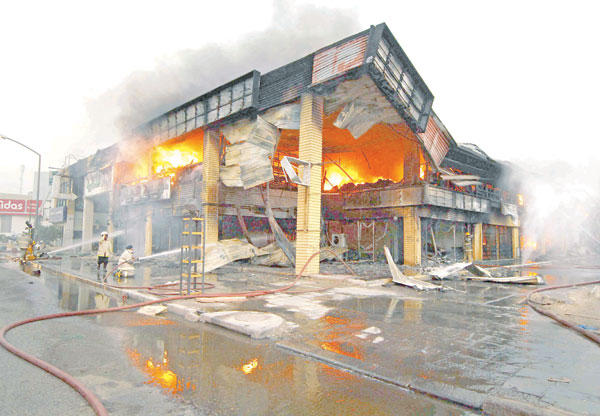 التهم حريق مساء أمس مجمعاً تجارياً تبلغ مساحته 2000 متر مربع في منطقة الضجيج، ويشتمل المجمع على عشرين محل اثاث ومشاغل. وتعامل مع الحريق ستة مراكز اطفائية و65 اطفائيا استطاعوا السيطرة عليه، ولم يسجل هذا الحادث أي خسائر في الأرواح. (تصوير نوفل إبراهيم)