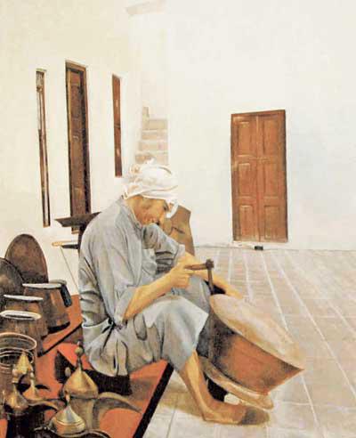 اختارت الفنانة التشكيلية منى هاشم الغربللي جماليات البيئة من حولها، فرسمت الفرجان والنول والسدو بشغف، لكن عشقها للبيئة لم يُثنِها عن رسم كل ما هو حديث ومبهر، فالحداثة في لوحاتها امتازت بقدرة وتقنية عاليتين انفردت بهما الغربللي عن سواها من الفنانات، من خلال مزج الواقعي والحديث على حد سواء. ضم المعرض 26 لوحة بألوان الزيت، 11 لوحة فن واقعي و15 لوحة فن حديث، تميزت معظمها بألوان فرحة جاذبة وأخرى رملية هادئة، إضافة إلى تجربتها الجديدة في استخدام اللون الأزرق في بعض اللوحات، فحازت إعجاب الحضور والمهتمين. ألوان الزيت عشقت الغربللي ألوان الزيت إلى حد الانصهار، ففي كل لوحاتها نجد الفنانة تستخدم ألوان الزيت دون سواها، فهي بحسب ما جاءت به استهواها الرسم بألوان الزيت دون غيرها، وهذا بالفعل ما لمسناه في لوحاتها، ليأتي لون الزيت معبراً وواضحاً، إضافة إلى تقنية الفنانة وقدرتها العالية على استخدام هذا اللون وتطويعه، خصوصاً في لوحاتها الخاصة بالتراث والبيئة، ومنها لوحة " الصفار" التي جاءت معبرة كتصوير زيتي، و" الكندري" والقهوة الشعبية و"الحضره" والفرجان، التي بدورها امتازت بالألوان الحديثة المائلة إلى اللون البرتقالي، عوضاً عن الألوان الترابية التي حرصت الفنانة على استخدامها في رسم المنازل والعناصر المختلفة في لوحة "الفريج"، بهدف إعطاء العمل صفة الواقعية والحداثة في مزيج فريد من نوعه يستحق الإشادة. «البورتريه» ومن الملفت في أعمالها تقنيتها العالية في رسم "البورتريه"، ففي تصريح خاص بـ"الجريدة"، أشارت الغربللي إلى أنها اعتادت رسم "البورتريه"، إذ كانت لها تجارب عديدة في فن "البورتريه"، فرسمت "بورتريهاً" لوالدها و"بورتريهات" لأحفادها، إضافة إلى أنها خلال دراستها في المرحلة الابتدائية كانت لها مشاركات في المعارض الخاصة بوزارة التربية، معظمها عبارة عن "بورتريهات". ومن الجدير ذكره، أن الغربللي حرصت في معرضها على عرض لوحة ضخمة لمجموعة شخوص من مختلف الجنسيات، أطلقت عليها "إلى أين يا عرب؟"، وقد استغرقت فترة طويلة لإنجازها. نبذة الفنانة منى الغربللي حاصلة على مؤهلات علمية عالية في إدارة الأعمال، ولها العديد من المشاركات في المعارض الجماعية، التي نظمتها الجمعية الكويتية للفنون التشكيلية أو معارض المجلس الوطني للثقافة والفنون والآداب، ومعرض التشكيليات الكويتيات 2000، ومعارض التحرير و25 فبراير، ومعارض هلا فبراير، ومعرض الأسبوع العربي الخليجي. وقد تخرجت في جامعة الكويت، وخاضت دورات تدريبية في مجال التصوير الفوتوغرافي، والتصوير الزيتي والرسم على الحرير (PAINT CHINA 99) والديكور. وهي عضوة في جمعيتَي الكويت والإمارات للفنون التشكيلية، وفي جمعية محبي الفنون الجميلة بمصر وفي مجموعة رذاذ بالكويت.