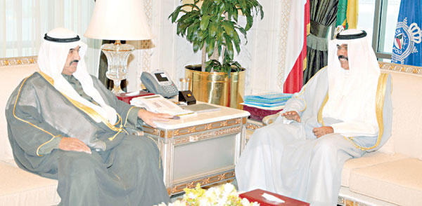 استقبل سمو نائب الأمير ولي العهد الشيخ نواف الاحمد في ديوانه بقصر السيف أمس سمو الشيخ ناصر المحمد رئيس مجلس الوزراء.واستقبل سموه رئيس مجلس الامة بالانابة عبدالله يوسف الرومي. كما استقبل سموه النائب الاول لرئيس مجلس الوزراء وزير الدفاع الشيخ جابر المبارك ونائب رئيس مجلس الوزراء وزير الخارجية الشيخ الدكتور محمد الصباح ووزير الداخلية الشيخ جابر الخالد ووزير النفط وزير الاعلام الشيخ احمد العبدالله والمستشار بالديوان الأميري محمد عبدالله ابوالحسن والمستشار بديوان رئيس مجلس الوزراء فيصل الحجي. واستقبل سموه الشيخ راشد الحمود الصباح.