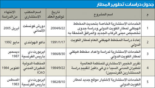 قال وزير المواصلات ووزير الدولــــــــة لشــــؤون مجلــــــــس الامــــــــــــة د. محمد البصيري ان خمسة جهات استشارية دولية قدمت دراسات لتحديث وتوسعة وتطوير مطار الكويت الدولي منذ عام 1983 بالاضافة الى اربعة عشر وزارة وادارة حكومية، مشيرا الى ان المجلس البلدي وافق في عام 2008 على توسعة المطار الحالي الى جهة الجنوب الى الدائري السابع وجهة الغرب.وذكر البصيري في رده على سؤال للنائب د. وليد الطبطبائي ان الادارة العامة للطيران المدني قامت بتوجيه كتب تعريف وشرح موجز عن اهداف الدراسات للعديد من الجهات الحكومية وغير الحكومية ذات العلاقة بالمشروع وطلب تسمية ممثل عنها ودعوتهم لحضور العرض التمهيدي الذي اعده المستشار ومن اهم هذه الجهات (الديوان الاميري – وزارة التخطيط – وزارة الاشغال – وزارة الطاقة – وزارة المواصلات – بلدية الكويت – وزارة الداخلية – وزارة الدفاع – الاجارة العامة للجمارك – الاجارة العامة للاطفاء – وزارة الصحة العامة – الهيئة العامة للبيئة – الهيئة العامة لشؤون الزراعة والثروة السمكية – الشركة الكويتية لتزويد الطائرات بالوقود (كافكو) بالاضافة الى شركات الطيران الوطنية ومقدمي الخدمات الارضية في مطار الكويت الدولي وتم خلال اعداد الدراسات مخاطبة هذه الجهات والاجتماع بهم لاخذ آرائهم ومعرفة متطلباتهم للوفاء بها.