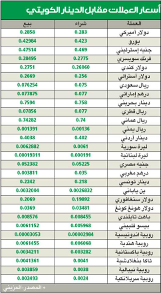 أسعار العملات مقابل الدينار الكويتي