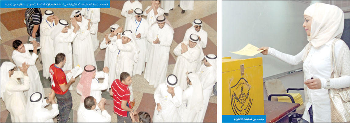 وفي كلية الآداب حصلت القائمة المستقلة على 972 صوتا وقائمة التآلف الطلابي على 787 صوتا وقائمة الوسط الديمقرطي 133 صوتا، بينما فازت القائمة الاجتماعية في كلية العلوم الاجتماعية بانتخابات جمعيتها إذ حصلت على 930 صوتا قبل القائمة المستقلة التي حازت 752 صوتا وقائمة الوسط الديمقراطي ذات الـ97 صوتا.أما انتخابات جمعية كلية العلوم فقد فازت بها القائمة العلمية بحصولها على 966 صوتا وبعدها جاءت القائمة المستقلة بـ942 صوتا وقائمة الوسط الديمقراطي بـ94 صوتا، في حين حصلت القائمة الإسلامية التربوية على المركز الاول في انتخابات الجمعية التربوية بكلية التربية بـ1112 صوتا وبعدها القائمة المستقلة بـ778.وكان طلبة جامعة الكويت قد توافدوا أمس على صناديق الاقتراع لاختيار القائمة التي ترأس رابطتهم، وتحديدا في كليات الآداب والتربية إضافة الى العلوم والعلوم الاجتماعية، ومنذ أن فتحت الصناديق في الساعة الثامنة صباحا في الكليات الاربع بدأ الحضور الطلابي الجيد على صناديق الاقتراع، حيث كان الحضور الطلابي لكلية الآداب كثيفا بعض الشيء خاصة من جهة الطالبات، وهو المشهد الذي تكرر في كلية العلوم الاجتماعية.وبينما شهدت كلية العلوم اقبالا جيدا بالنسبة لعدد الطلبة الذين تضمهم كبرى الكليات في الجامعة كانت كلية التربية تعاني ضعف الاقبال لقلة القوائم المتنافسة. وكان التنافس قويا بين القوائم في كليتي الاداب والعلوم الاجتماعية التي كان من الصعب تكهن الفائز فيهما، أما كلية العلوم فإن سيطرة قائمة العلمية عليها لم تكن حاجبة لتفاؤل القائمة المستقلة، وفي كلية التربية كان الامر شبه محسوم للقائمة الاسلامية التربوية.الطالبات أكثر في «العلوم» شهدت كلية العلوم اقبالا كبيرا يتلاءم وكثرة عدد الطلبة التابعين لها حيث وصل عدد المتقدمين لصناديق الاقتراع في لجنة الطلاب الى 744 من إجمالي 1398، ومن الطالبات 987 من إجمالي 2085 حتى الساعة الثانية عشرة ظهرا، وقد غلبت الطالبات على الطلاب في الحضور .وفي هذا الصدد، أكد مدير العلاقات العامة في جامعة الكويت فيصل مقصيد أن الاقبال كان كبيرا من بداية فتح الصناديق وظل في تزايد مستمر حتى اقفالها بحيث لم تسترح اللجنة، موضحا أن العملية الانتخابية سارت بطريقة سلسة للغاية ولم توجد أي مشكلة تذكر داخل القاعة، مشيدا بتعاون جميع المناديب.وفي حين أشارت رئيسة لجنة الاقتراع للطالبات أن حضور الطالبات كان مميزا نظرا إلى كثرة عددهن في كلية العلوم، مشيرة الى أن عدد الطالبات يتزايد مع مرور الوقت كما أن اللجنة لم تواجه أي مشاكل ولم يكن هناك تأخير من المندوبات، أوضح منسق القائمة المستقلة عبدالرحمن العوضي أن الاقبال كان جيدا في الساعات الاولى من فتح صناديق الاقتراع وزاد بعد الساعة العاشرة ليصبح كبيرا، لافتا الى أن وضع المستقلة في تحسن بعمل العديد من الامور التي تحسب لها، مبينا أن صناديق الطالبات هي ما شكل الفارق للقائمتين.أما منسق القائمة العلمية علي الكندري فقد قال إن وضع الانتخابات جيد والجميع كان على أعصاب مشدودة، مبينا استياءه مما حدث بين عضو من القائمة المستقلة وعضو من القائمة العلمية، مشيرا إلى أن ما تردد من انباء عن تحالف الاسلامية مع العلمية عار عن الصحة كما أن بأمكان أي شخص أن يقول أن المستقلة متحالفة مع الاسلامية ولكن ذلك يعتمد على الذمة.زحام على الاقتراع في «الاجتماعية» وكان التنافس بين القائمتين في كلية العلوم الاجتماعية ظاهرا في عيون اعضائهما ولم يبد على الطلبة حيث كان أغلبية الموجودين أمام صناديق الاقتراع من أعضاء القائمتين، لدرجة أنهم اقفلوا الطريق أمام الداخلين للاقتراع مما جعل الطلبة تهرب خوفا من التزاحم، في حين كان الاقبال ضعيفا في الساعات الاولى من فتح أبواب الاقتراع.وكحال العلوم كان الاقبال واضحا من قبل الطالبات في العلوم الاجتماعية كونهن الغالبات في العدد، حيث وصل عدد الطلاب المقترعين في صندوق الاقتراع الى 388 من أصل 720، وللطالبات 967 من أصل 2181 في تمام الساعة الثانية عشرة ظ
