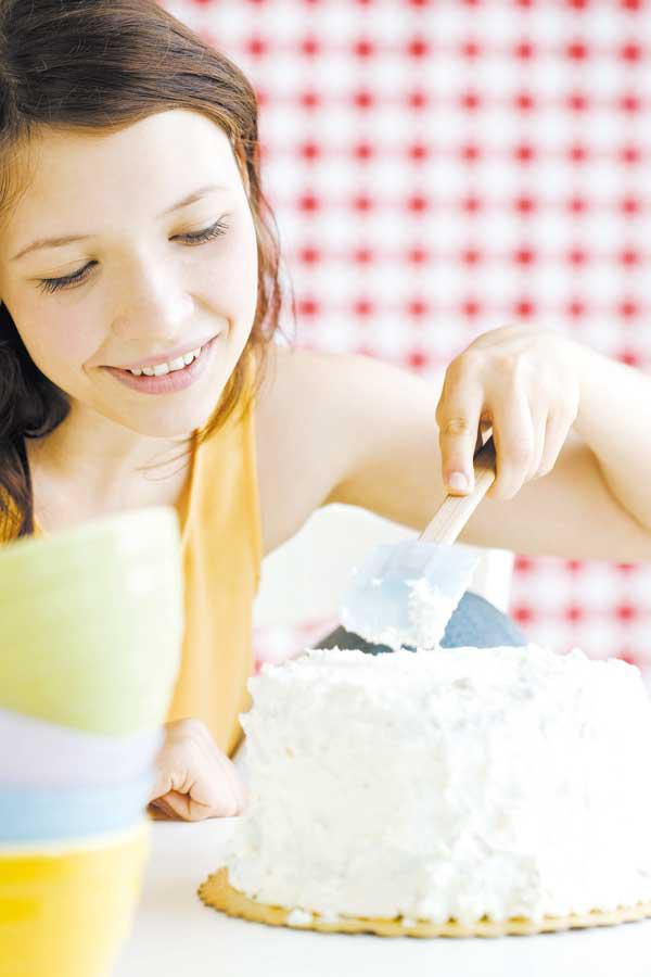 - 550 غراماً من السكّر.- 430 غراماً من الطحين.- 375 غراماً من لبن بالحمضيات.- 250 ملل كريما.- 200 غرام زبدة.- 120 غراماً من بودرة اللوز.- 120 غراماً من السكّر الخاص بالحلوى.- 10 بيضات.- مغلّف خميرة كيماوية.- حبة ليمون.- بيكاربونات الصودا.- عصير عنب.- كريما اللوز. - مربّى الفاكهة.الطريقة- أخفقي 100 غرام زبدة، 300 غرام سكّر، ملعقتين من برش الليمون إلى أن تحصلي على كريما.- أضيفي صفار خمس بيضات واحدة تلو الأخرى.- امزجي الخليط مع الطحين المنخول مع الخميرة ونصف ملعقة من البيكاربونات.- أخفقي بياض خمس بيضات جيّداً مع ملعقة سكّر وأضيفيها إلى العجينة، ثم اضيفي اللبن.- أسكبي العجينة في قالب مدهون بالزبدة والطحين، ثم اخبزيها في الفرن على حرارة مرتفعة (180 درجة مئوية) حوالى 40 دقيقة.- أخرجيها من الفرن ودعيها تبرد قبل نزعها من القالب.- أخفقي بقية الزبدة والسكر. أضيفي صفار خمس بيضات،واحدة تلو الأخرى، بضع ملاعق من عصير العنب وبودرة اللوز.- حضّري شراباً بتذويب 100 ملل من عصير العنب في كمية مماثلة من ماء تحتوي القليل من السكّر.- إقطعي قالب الحلوى بطريقة تحصلين فيها على ثلاثة أقراص بالسماكة نفسها. قطّري عليها الشراب الذي حضّرته.- غطّي أحد الأقراص بثلث كمية كريما الزبدة. أطبقي القرص الثاني فوق الأول واسكبي عليه نصف كمية الكريما المتبقية. ضعي القرص الثالث فوق القرصين الأولين وغطّيه بمربّى الفاكهة. زيّني محيط قالب الحلوى بكمية الكريما المتبقية ثم ضعي عليها كريات كريما اللوز.- أخفقي الكريما لتحصلي على كريما شانتيلي ثم غطّي بقسم منها وجه قالب الحلوى واستعملي الباقي لرسم أشكال ورود للزينة.